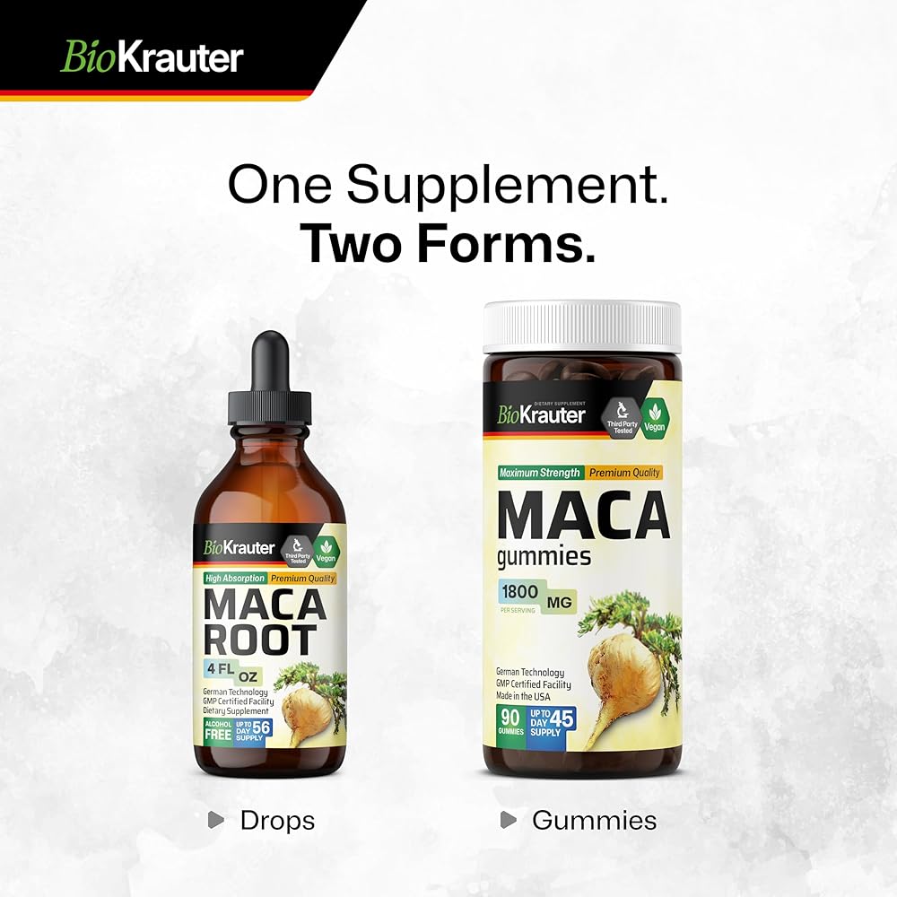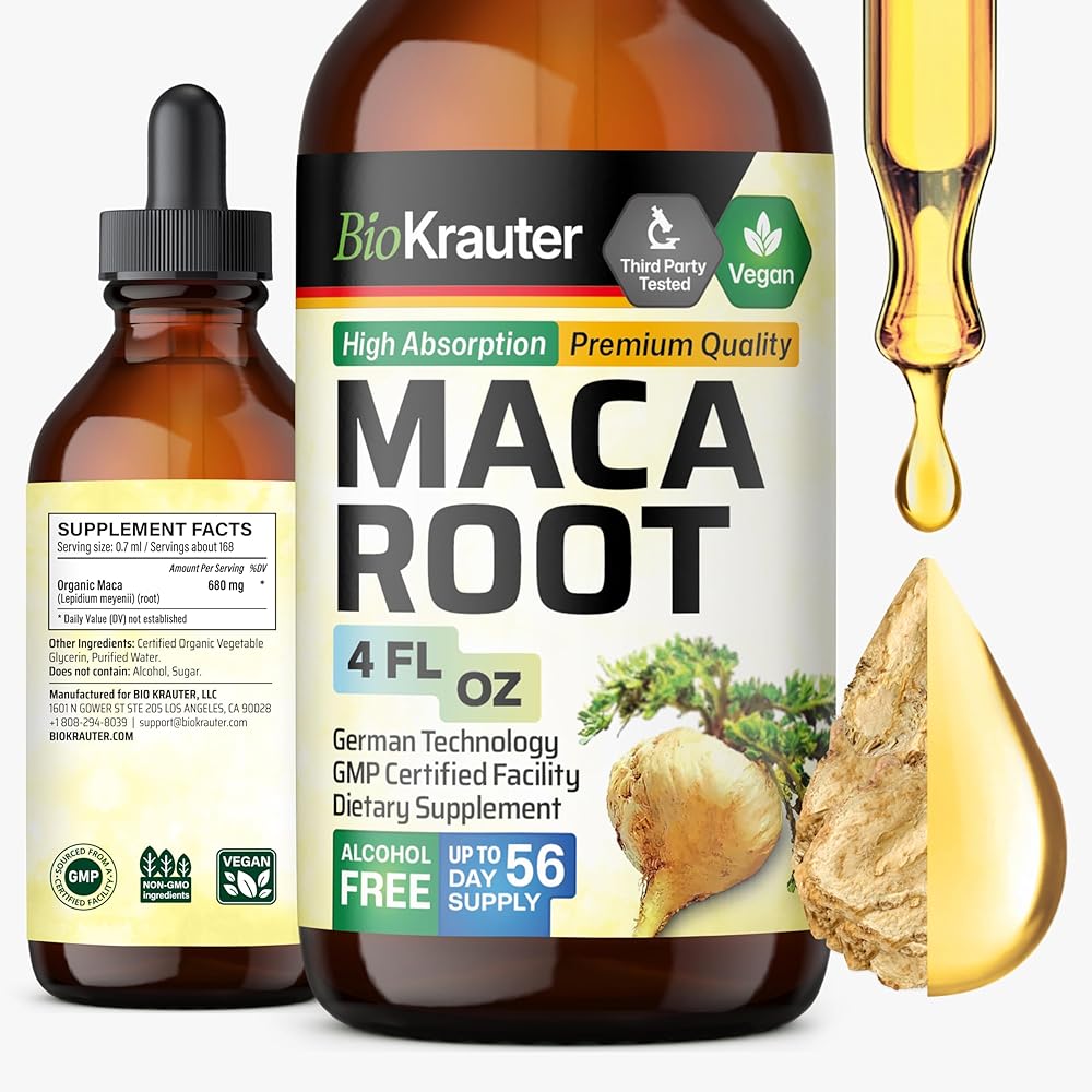صبغة جذر الماكا للصحة العامة: مستخلص الماكا السائل BioKrauter، المصنوع من Lepidium meyenii (المعروف باسم جذر الماكا)، يدعم الصحة العامة.