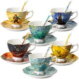 - كوب شاي وصحن بورسلين سعة 8 أونصة، ألوان متنوعة، نمط زهور، مجموعة من 8 قطع