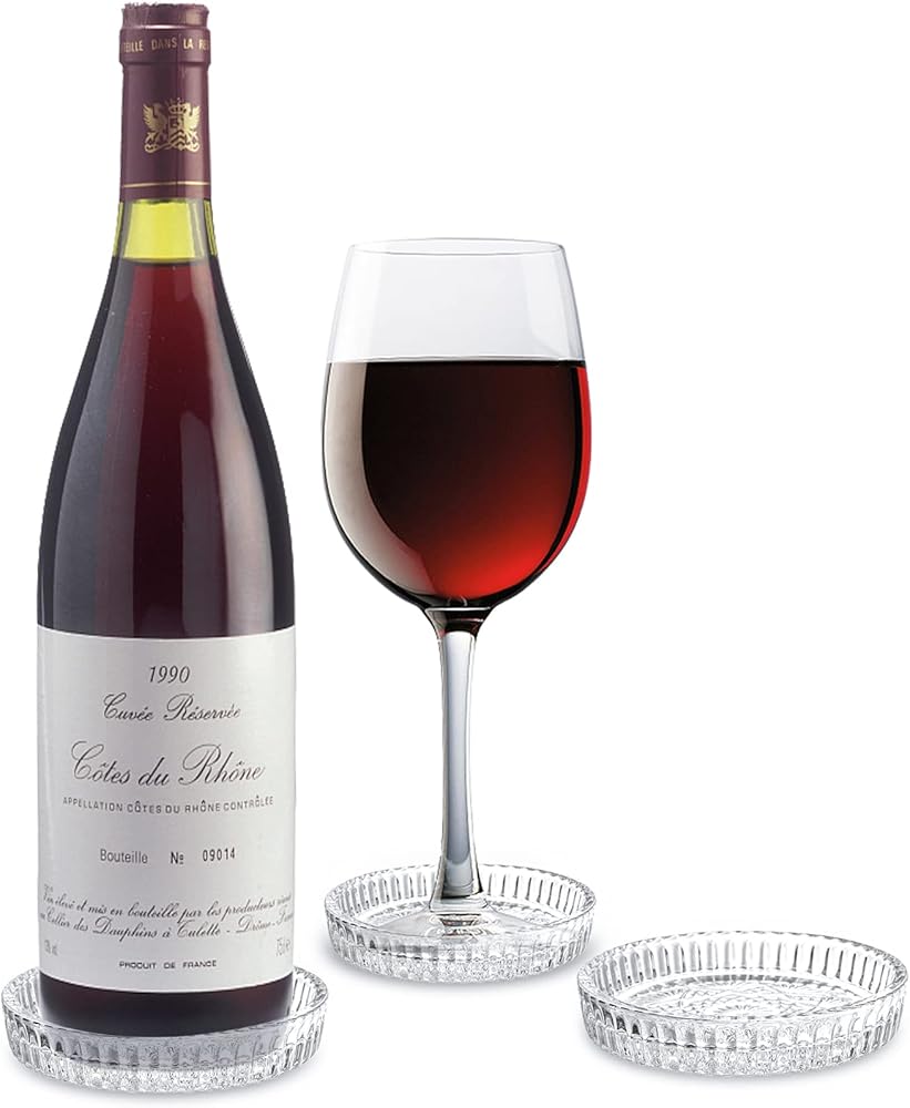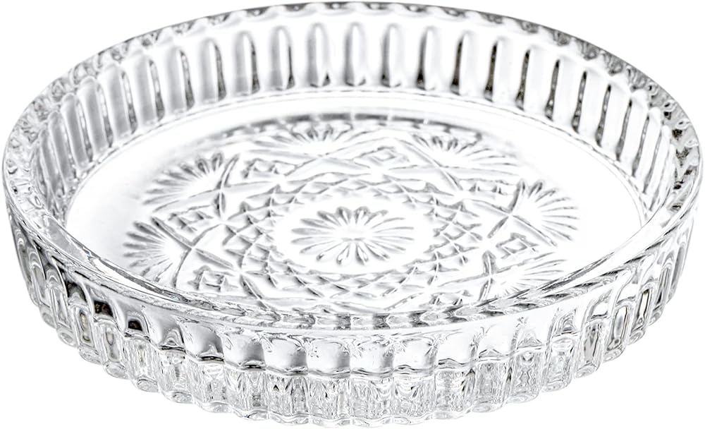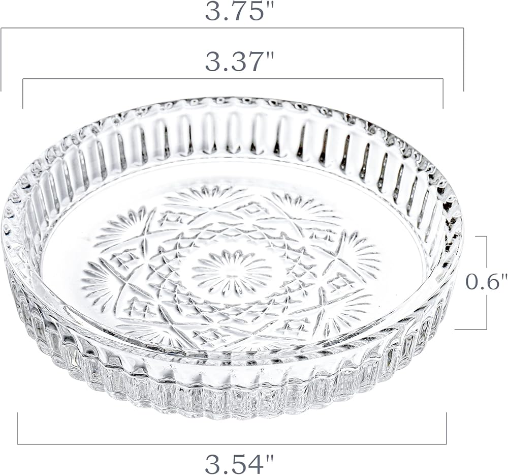 • Made of crystal clear glass with a vintage pressed design, provide a solid base to rest your drinks to protect your furniture from stains and rings.