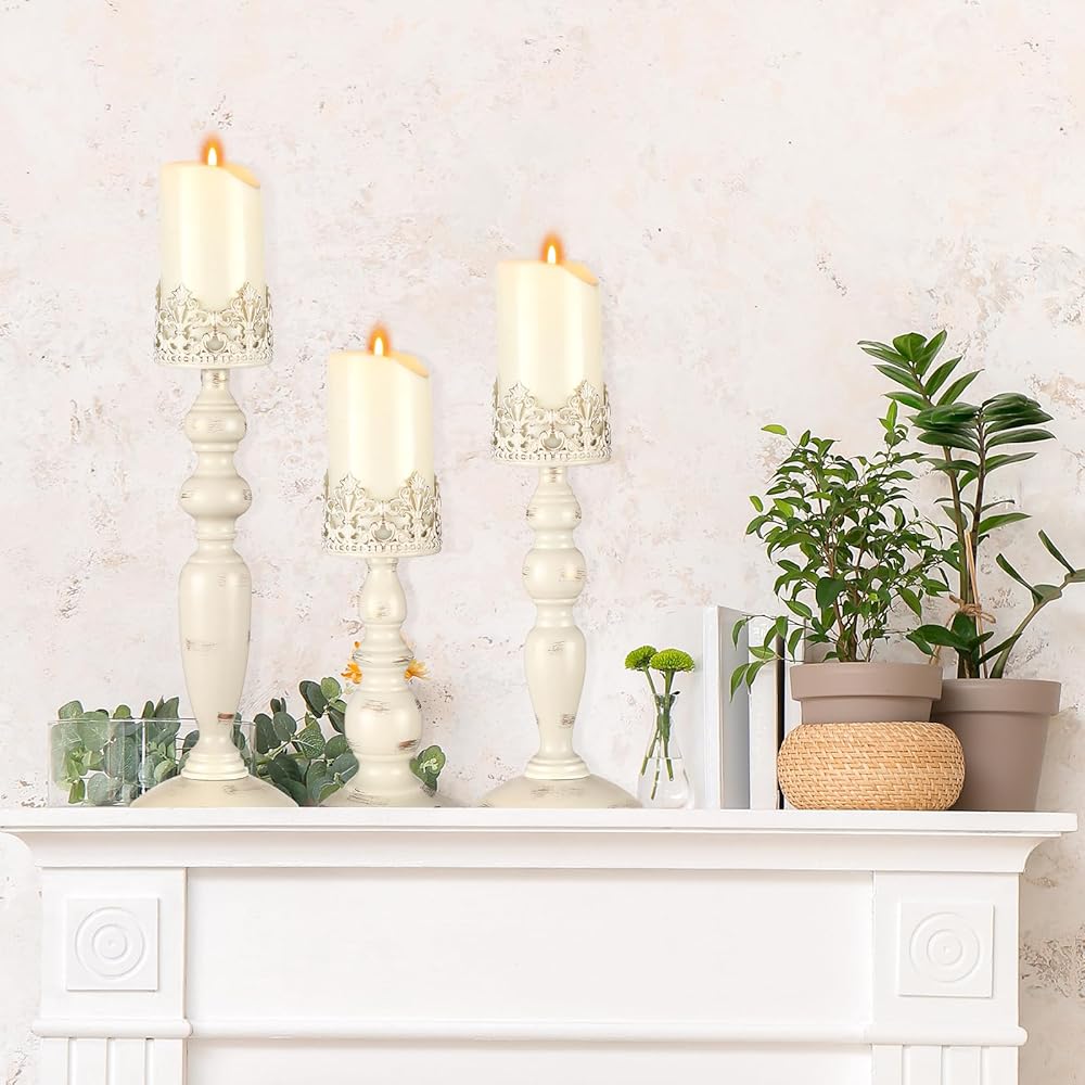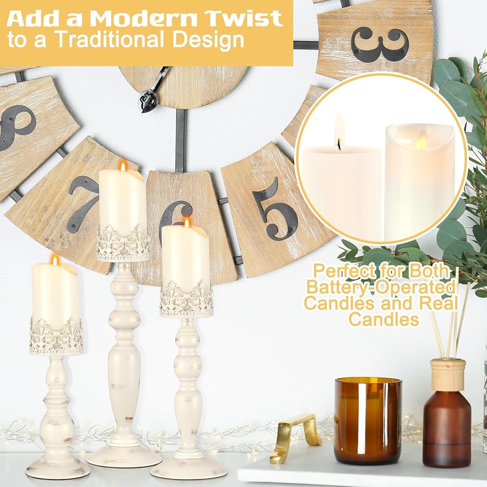 • Customized Gift Combinations: our antique pillar candlestick sets make ideal gifts for those who appreciate vintage decorations or beautiful living room decorations; They can provide their space with a warm, charming, and beautiful candlelight, expressing your care and love for them in the most gentle and intimate way possible