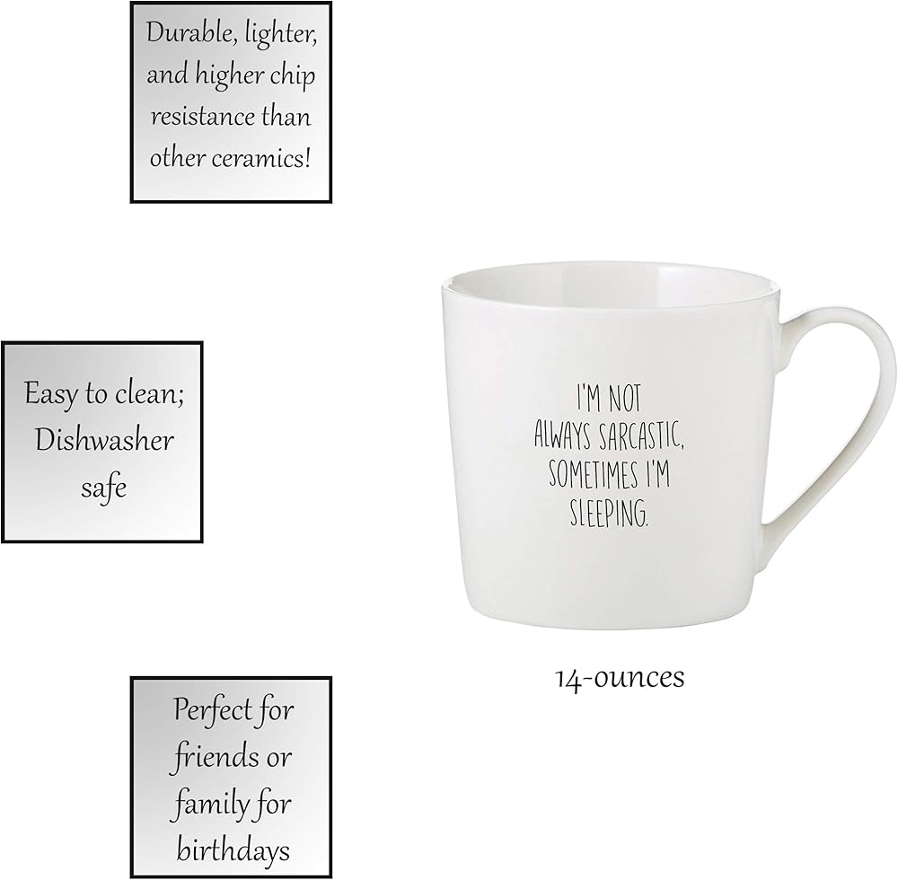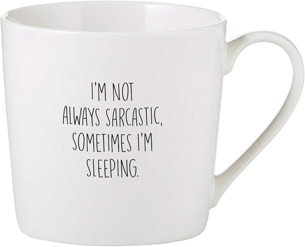 • CLASSIC WHITE AND BLACK: White mug with hand-lettered black writing that reads, "I'm not always sarcastic, sometimes I'm sleeping."