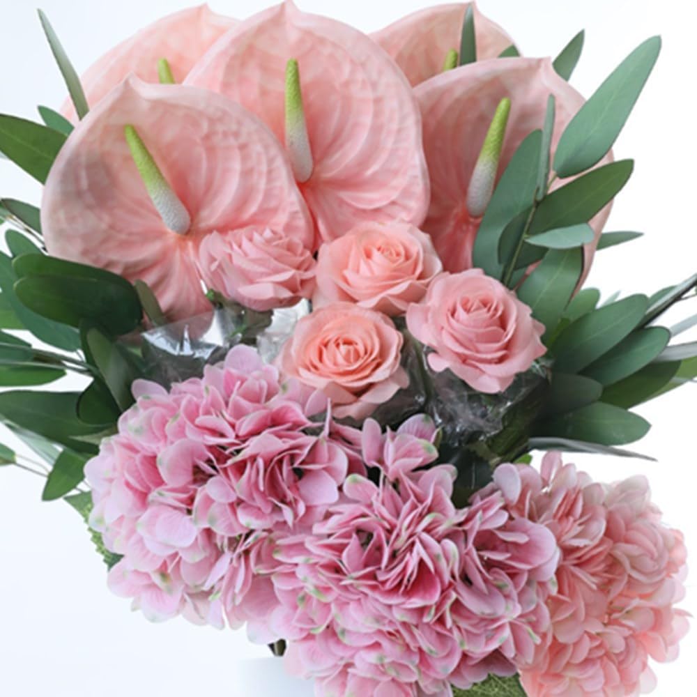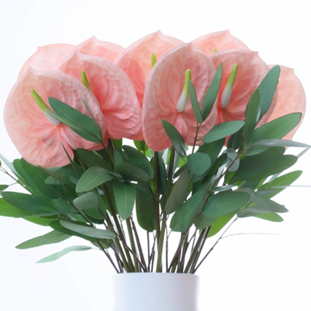 The anthurium with large leaves is suitable as supplementary flowers for bouquets to look fuller, and also works wonderfully just by itself in the vase.for stages, parlours, hotel, bookshelf, festival, ceremony, anniversary, party decor, gift ideas , hassle free and saves water.