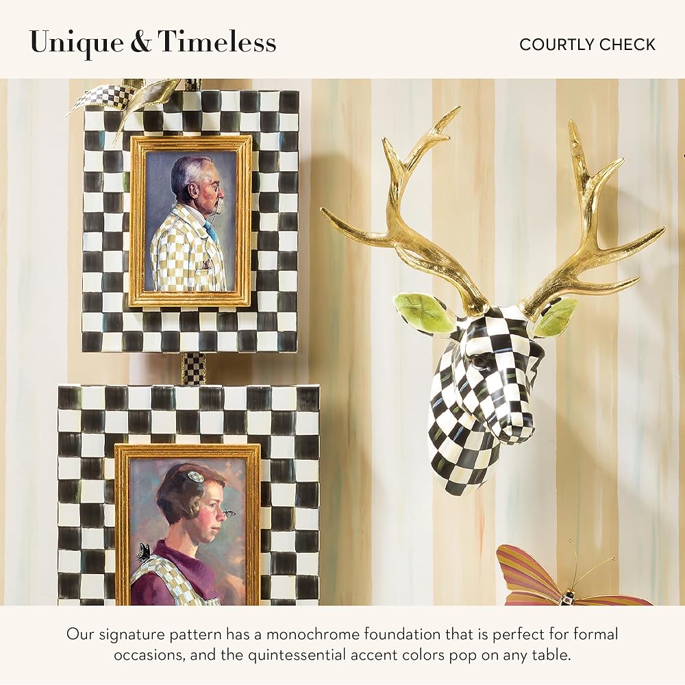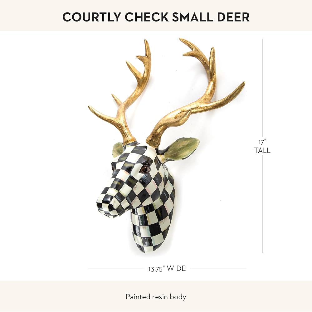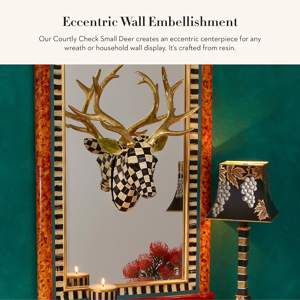 فن فريد من نوعه على شكل رأس غزال: يتميز غزالنا الصغير ذو المربعات المحكمة بظهر جميل يرتدي نمطنا المميز باللونين الأسود والأبيض ومزين برف جدير بالجائزة من قرون الذهب. قم بتوسيطه على الحائط أو الباب للحصول على ديكور غرفة ملفت للنظر.