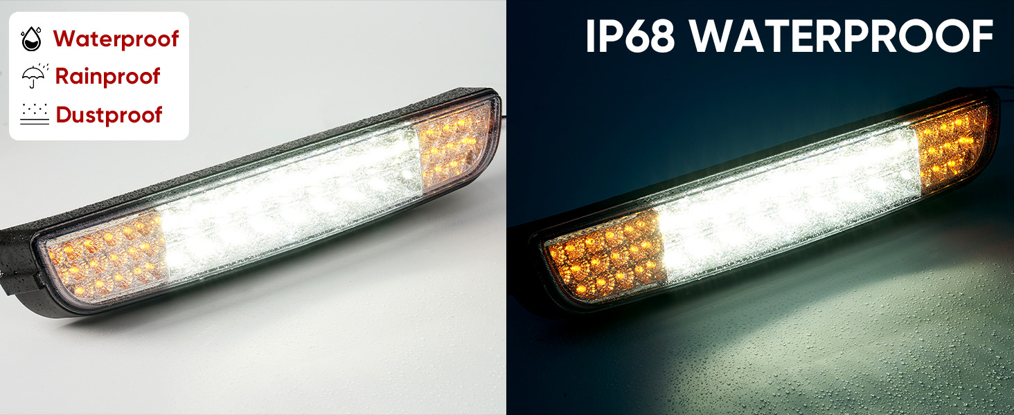 [تتضمن العبوة] - تتكون العبوة من 1 شريط إضاءة أمامي LED، 2 مصابيح خلفية LED (يسار ويمين)، 1 مفتاح، 1 سرج أسلاك للتوصيل والتشغيل، 1 قالب قطع ومجموعة غسالة براغي. يرجى العلم أن هذه مجموعة إضاءة أساسية ولا تتضمن وظائف إشارة الانعطاف وإضاءة الفرامل.