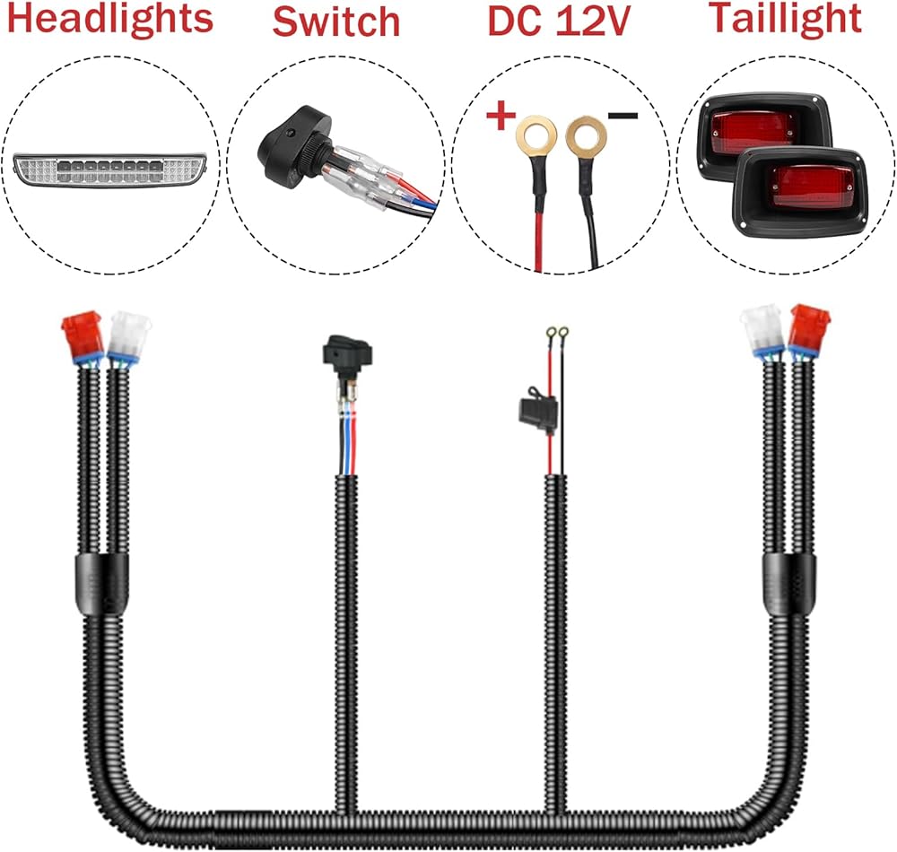 [مجموعة مصابيح عربة الجولف LED] - تم تصميم مجموعة شريط الإضاءة LED هذه لـ EZGO TXT خصيصًا لموديلات الغاز والكهرباء EZGO TXT 1996-2013. يأتي سرج الأسلاك الكامل مع مقابس منتهية مسبقًا، مما يجعل التثبيت سهلاً بالنسبة لك.