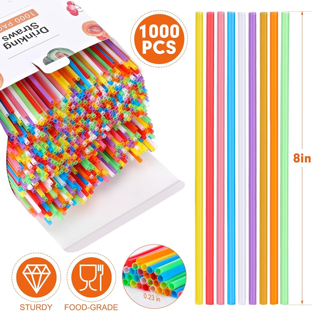 [1000 pcs] قش قش شرب ملون للشرب - قطر طويل القطر (8.2 "longx0.23")