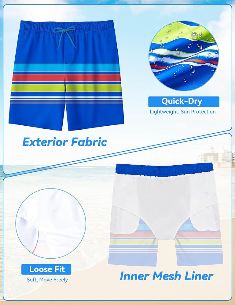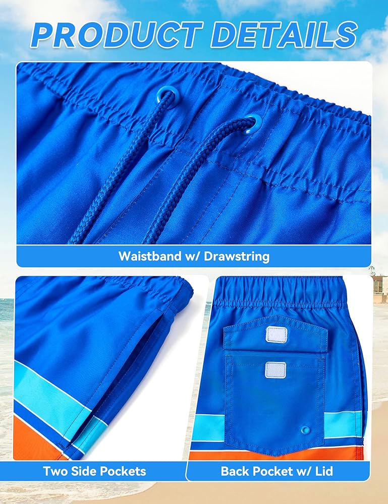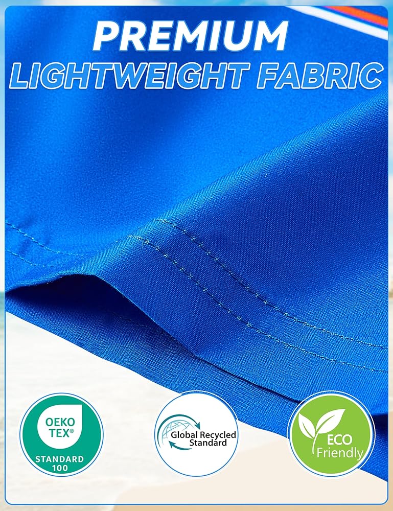 Dive into Summer with BARRACUDA BAY Boy's Swim Trunks Elevate your swimwear game with BARRACUDA BAY Swim Trunks, designed to provide the perfect blend of comfort, style, and eco-friendly functionality. Whether you're hitting the beach, lounging by the pool, or engaging in your favorite water sports, our swim trunks are crafted to keep you looking and feeling your best. Premium Quick-Dry Fabric Our swim trunks are made from high-quality, lightweight quick-dry material that ensures maximum comfort and flexibility. The fabric wicks away moisture, keeping you dry and comfortable both in and out of the water. Eco-Friendly and Certified Safe We take pride in using materials that are globally recycled standard certified and eco-friendly. Additionally, our swim trunks are OEKO-TEX certified, guaranteeing that they are free from harmful substances and safe for your skin. Superior Comfort With an elastic waistband and adjustable drawstring, you can achieve the perfect fit every time. The ultra-soft, breathable inner mesh liner offers additional support and prevents chafing, so you can enjoy your time in the water without any discomfort. Functional and Stylish Featuring multiple pockets, including 2 convenient side pockets and a secure back pocket with lid, you can keep your essentials close at hand. Choose from a variety of vibrant colors and trendy patterns to suit your personal style and make a splash wherever you go. Built to Last BARRACUDA BAY Swim Trunks are designed to withstand frequent use and resist the effects of sun exposure and chlorine. Enjoy your swim trunks season after season with our durable construction and fade-resistant materials. Versatile Swimwear Perfect for swimming, surfing, beach volleyball, or simply relaxing by the pool, our swim trunks are the ultimate addition to your summer wardrobe. Experience the perfect combination of style, performance, and eco-friendly practices with BARRACUDA BAY Swim Trunks. Make a Statement Stand out from the crowd with BARRACUDA BAY Swim Trunks. Order yours today and dive into a season of fun, fashion, and functionality.