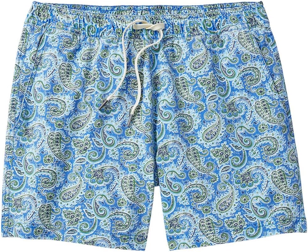 Detail oriented relaxed fit swim trunks made from durable water repellent (DWR) fabric for lightning-fast drying. A bright interior liner and sleek fit keep the playful, easy vibe intact.