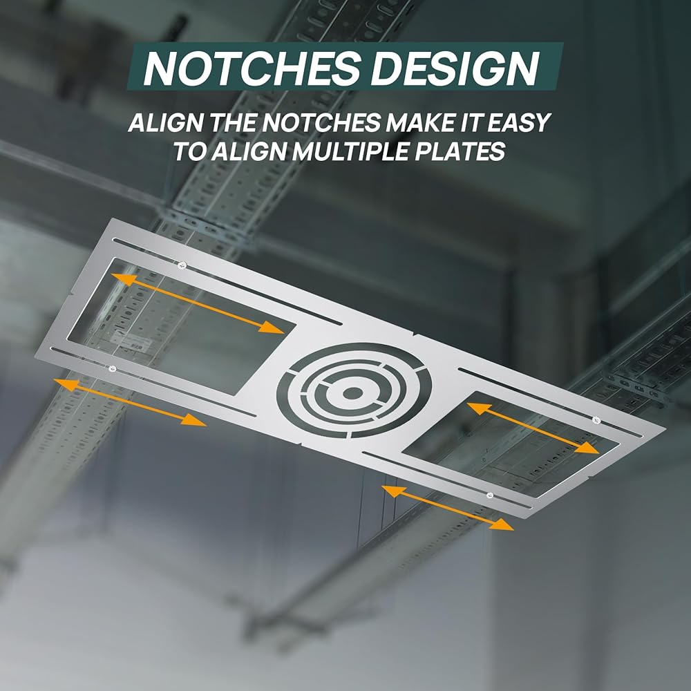 سهولة التركيب: تحتوي دعامة التثبيت بالسقف هذه على فتحات تثبيت ومسارات لتناسب أنواعًا مختلفة من تخطيطات الهيكل. ستساعد شقوق المحاذاة الموجودة على اللوحة في محاذاة لوحات متعددة. ما عليك سوى ضبط موضع لوحة التثبيت وتثبيتها بالمسامير أو المسامير