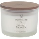 Experience a fragrance-filled journey into wellness with Chesapeake Bay Mind & Body Candles. From the first lighting, you'll be inspired — the mood-enhancing fragrance infused with pure essential oils and the softly colored frosted glass create a peaceful, spa-like feel. The wood grain lid adds a comforting element of nature, making this candle a beautiful gift for yourself or others. Made in the USA with materials from around the world.