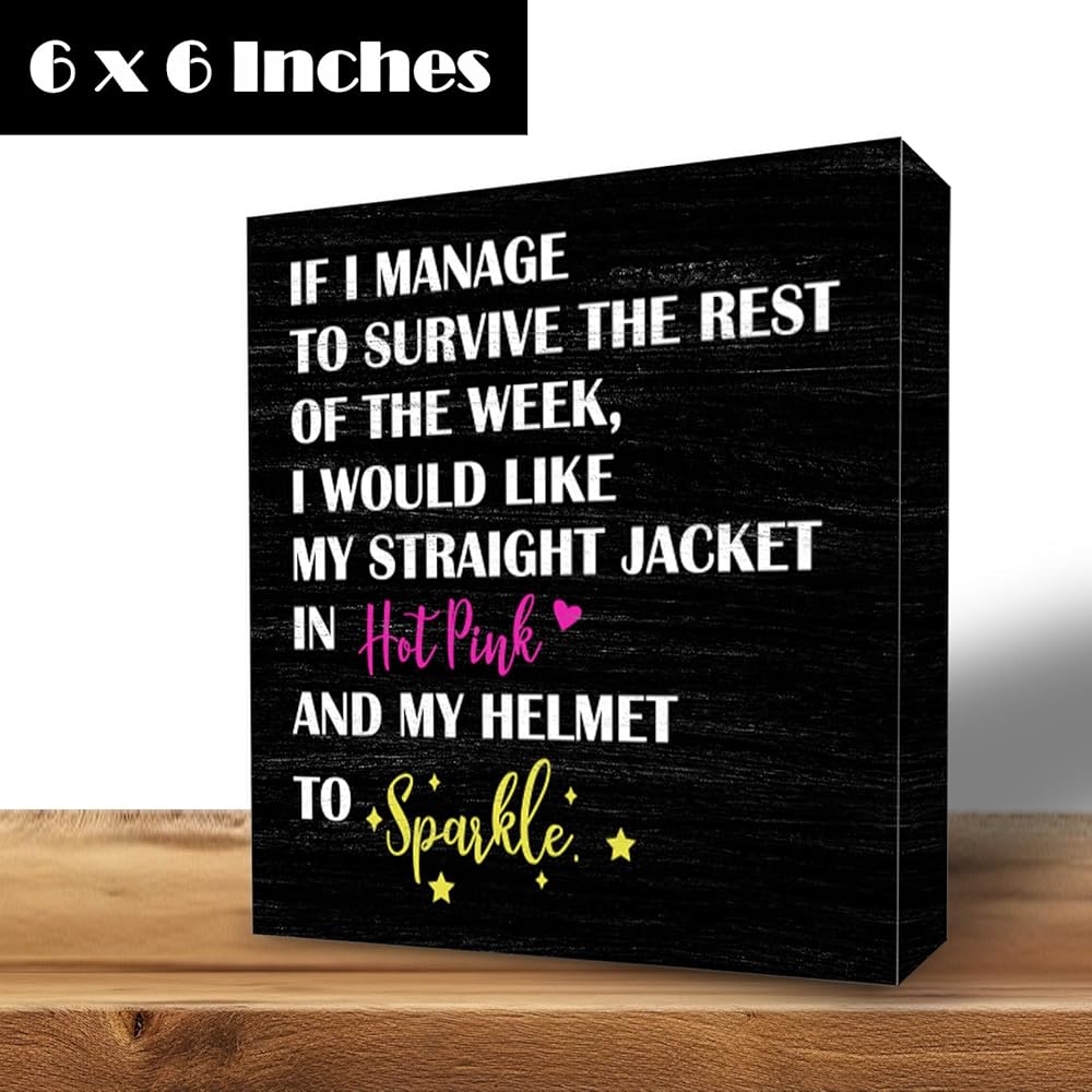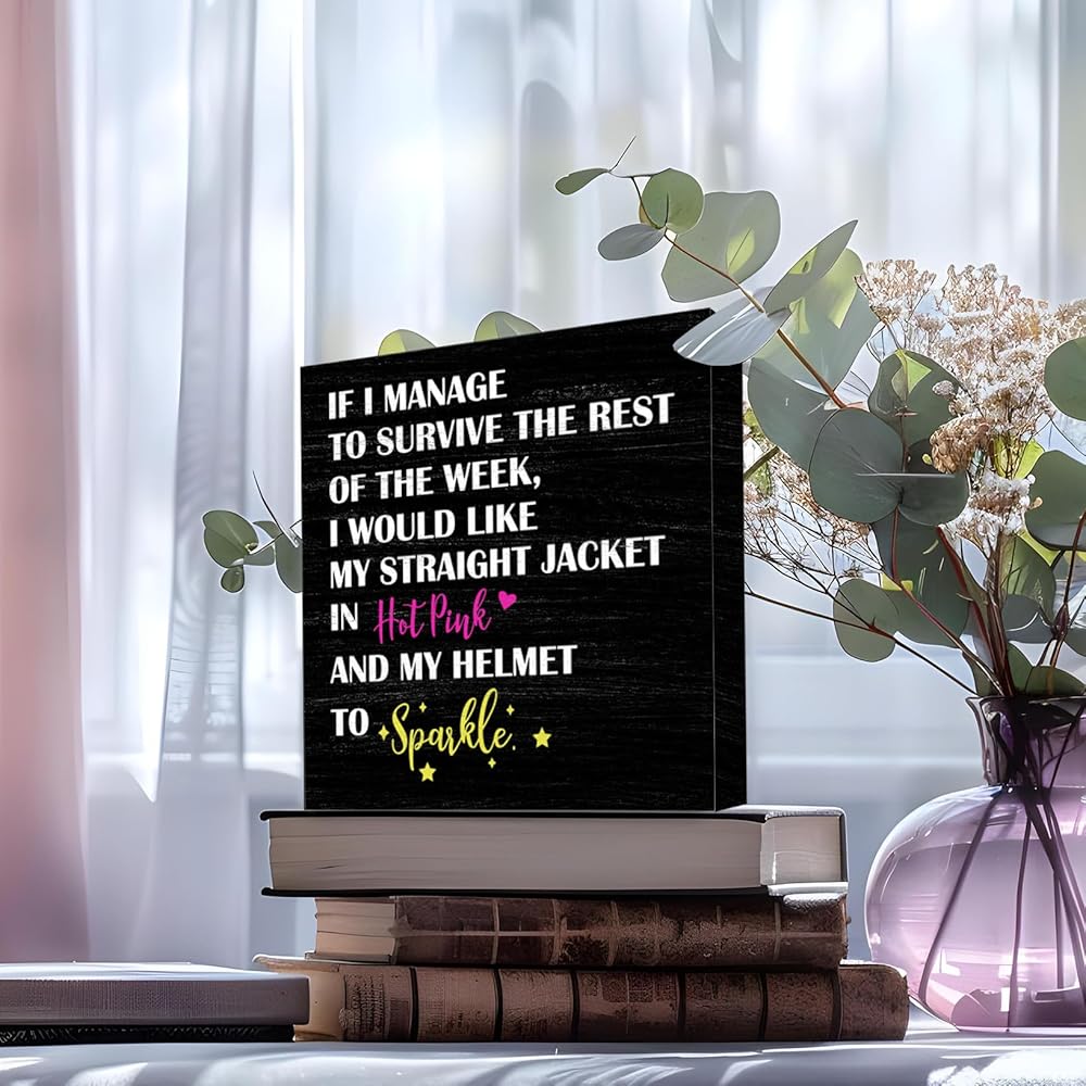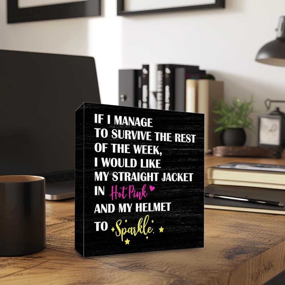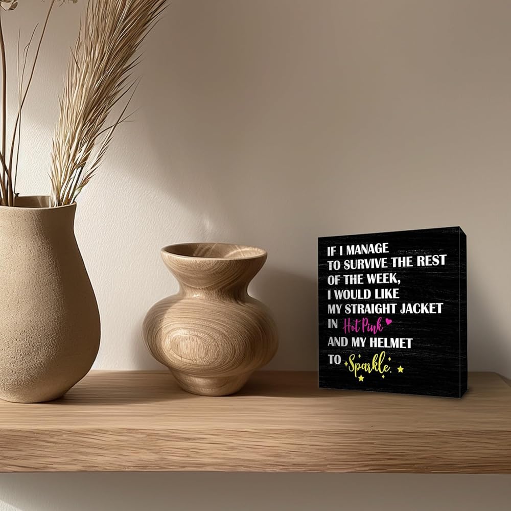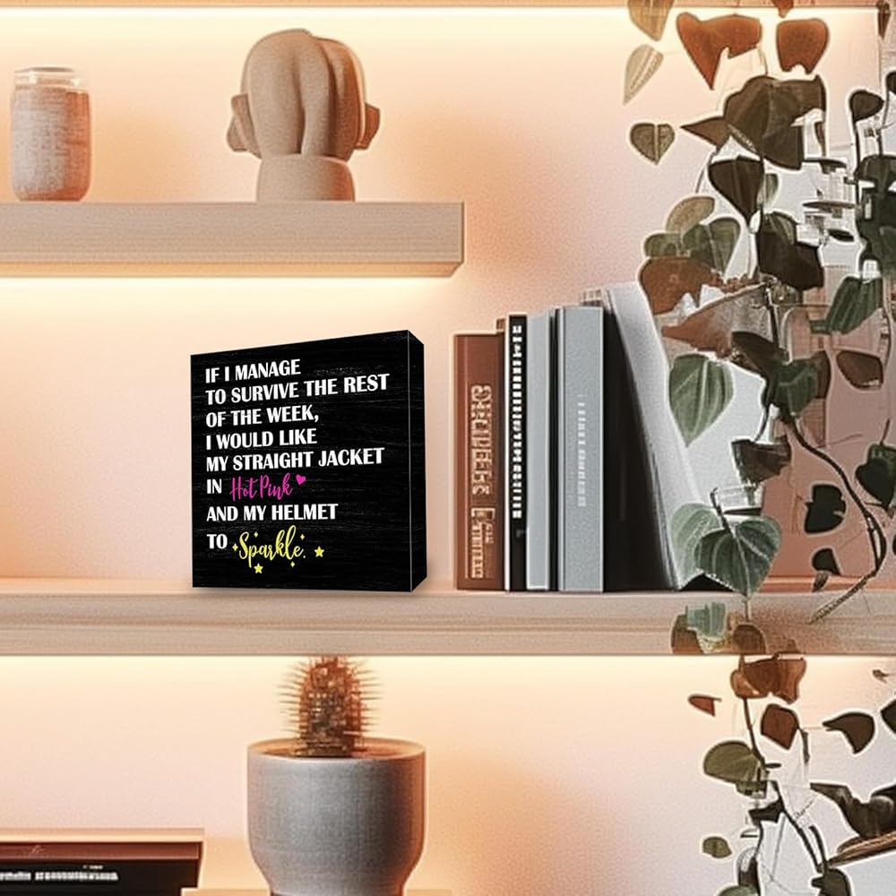 Hot Pink And Sparkle Wooden Sign, Funny Office Desk Decor, Wood Home Office Decor for Women, 6x6x0.6 Inches