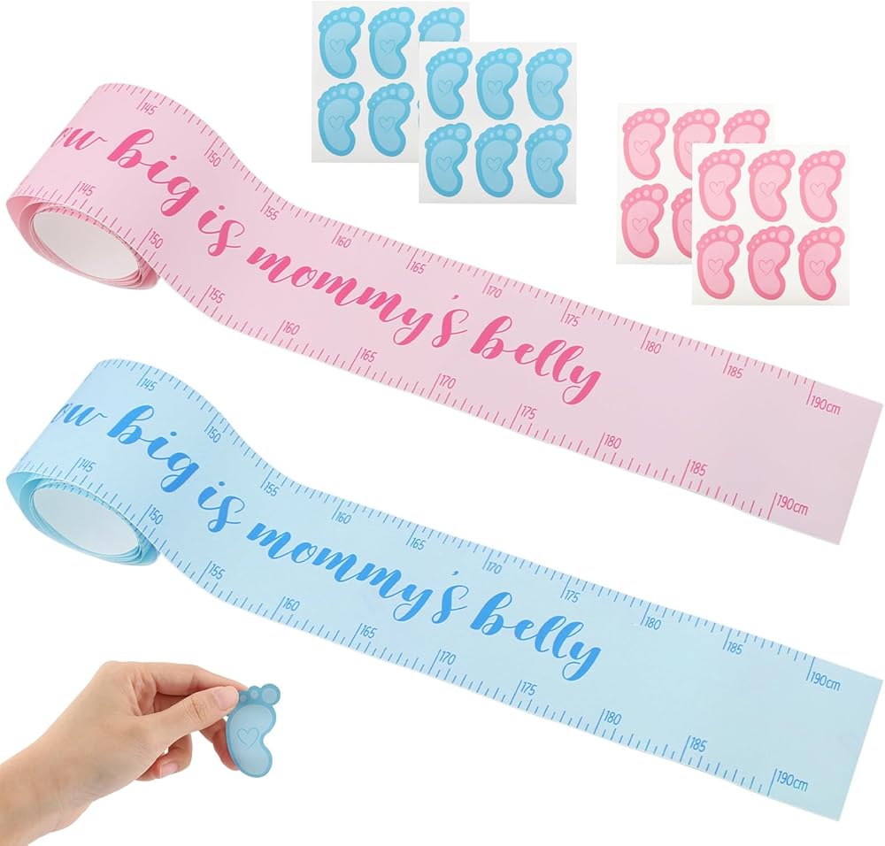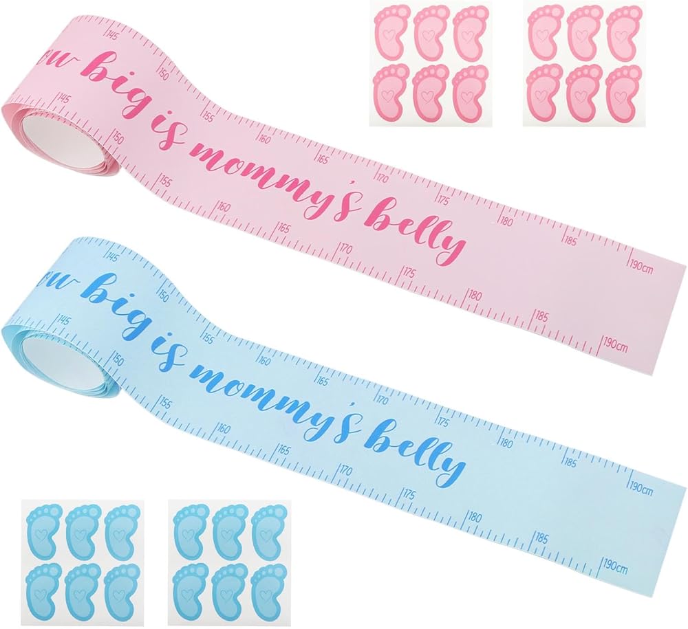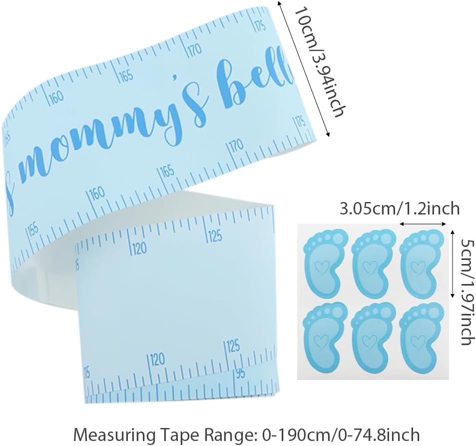 شريط قياس استحمام الطفل بكرتين، لعبة قياس البطن، شريط قياس البطن، شريط قياس البطن، هدايا حفلات استحمام الطفل، لوازم ألعاب شريط القياس (الحجم: 3.94 × 74.8 بوصة)