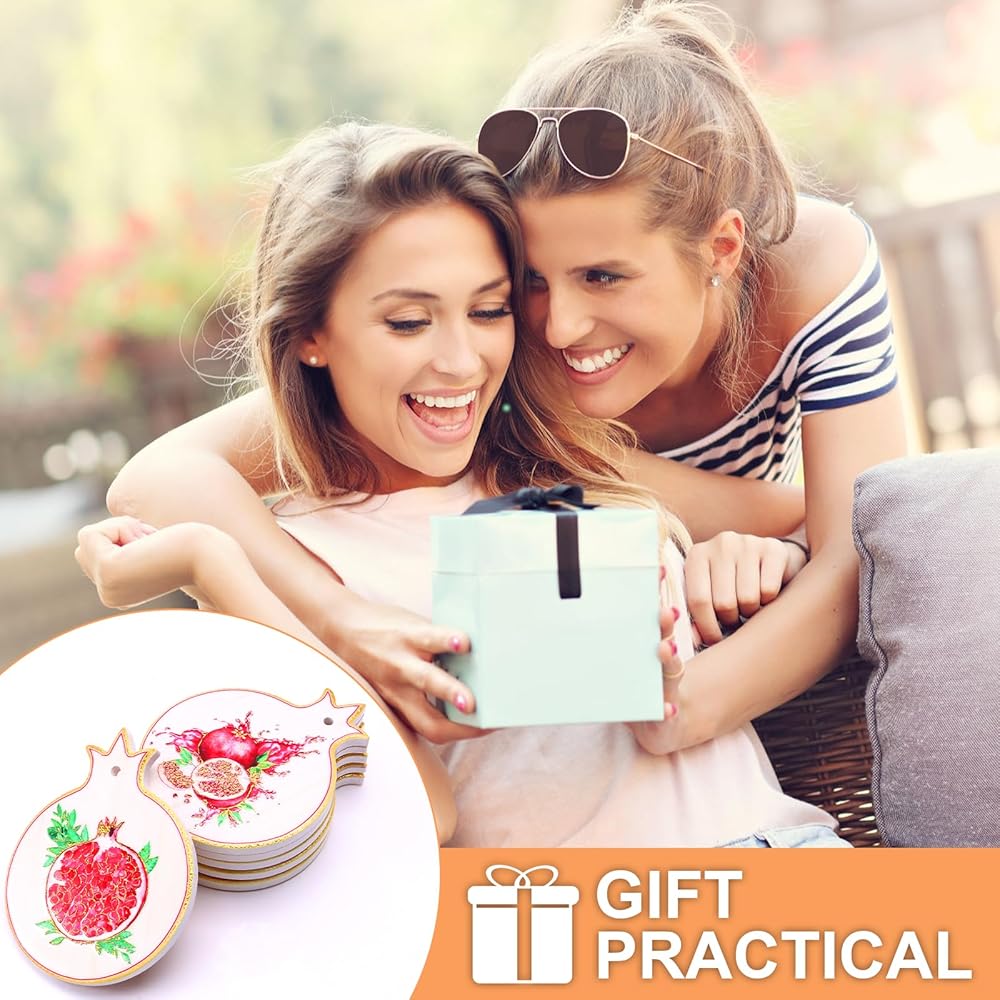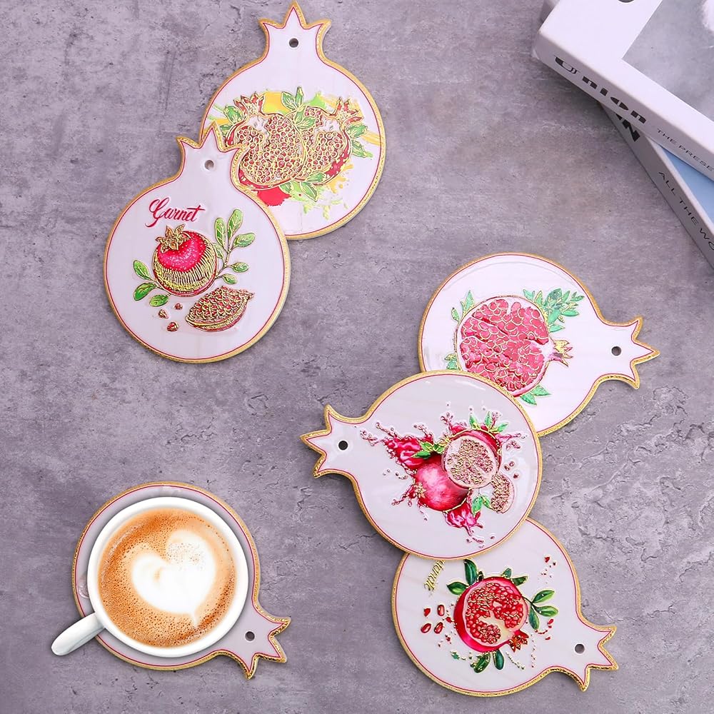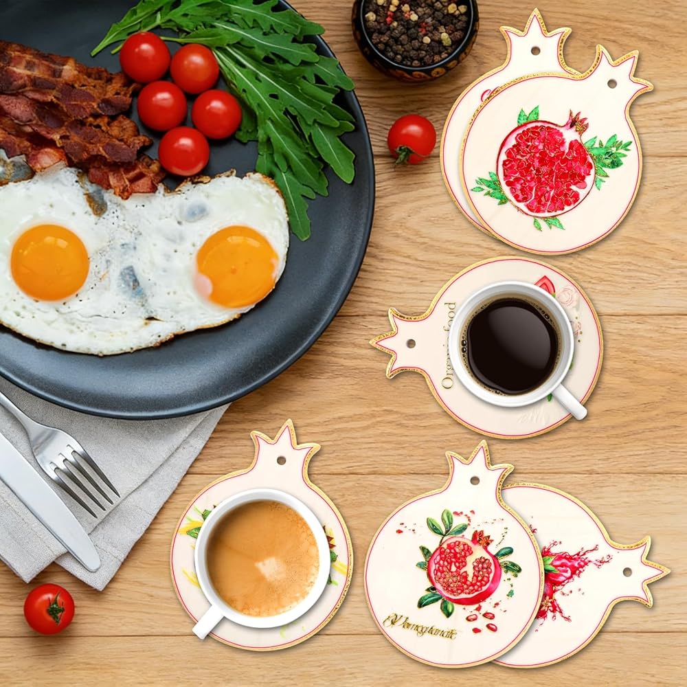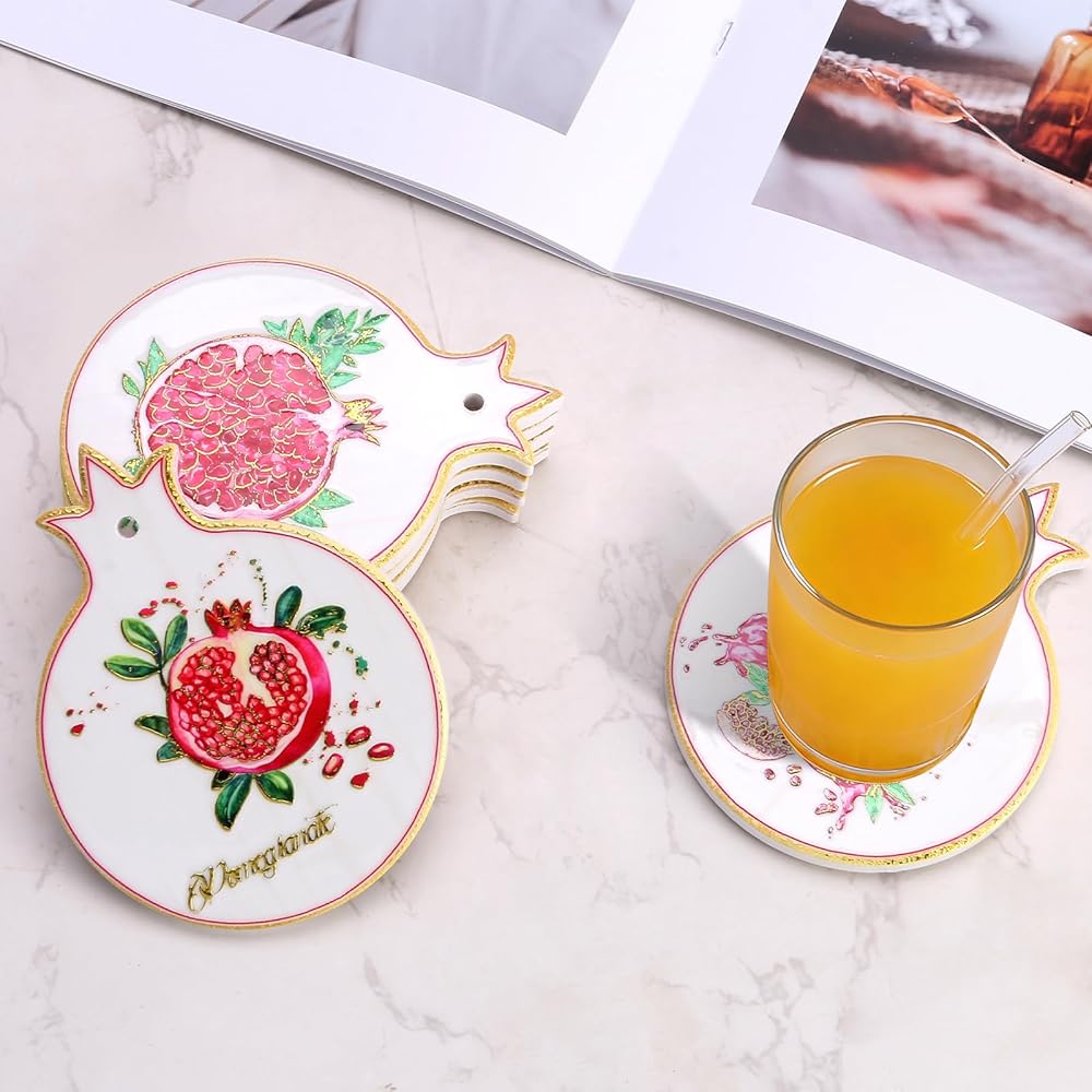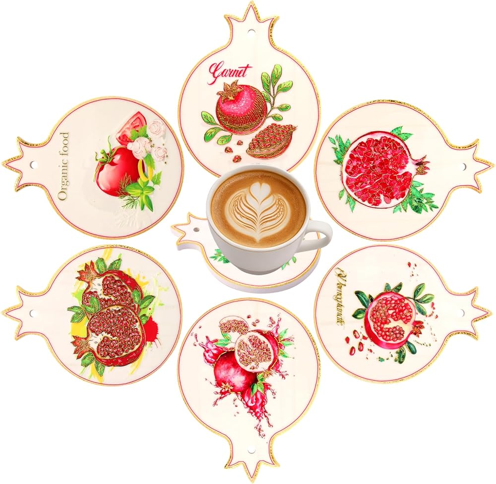 • Unique pomegranate Coasters: Exquisite vintage design drink coasters, very beautiful pomegranate pattern with gilded lines, with unique designed, handmade texture, the coasters are like retro art pieces. Vivid colors will bright your days. Retro style suits for most of decoration style of your sweet home.