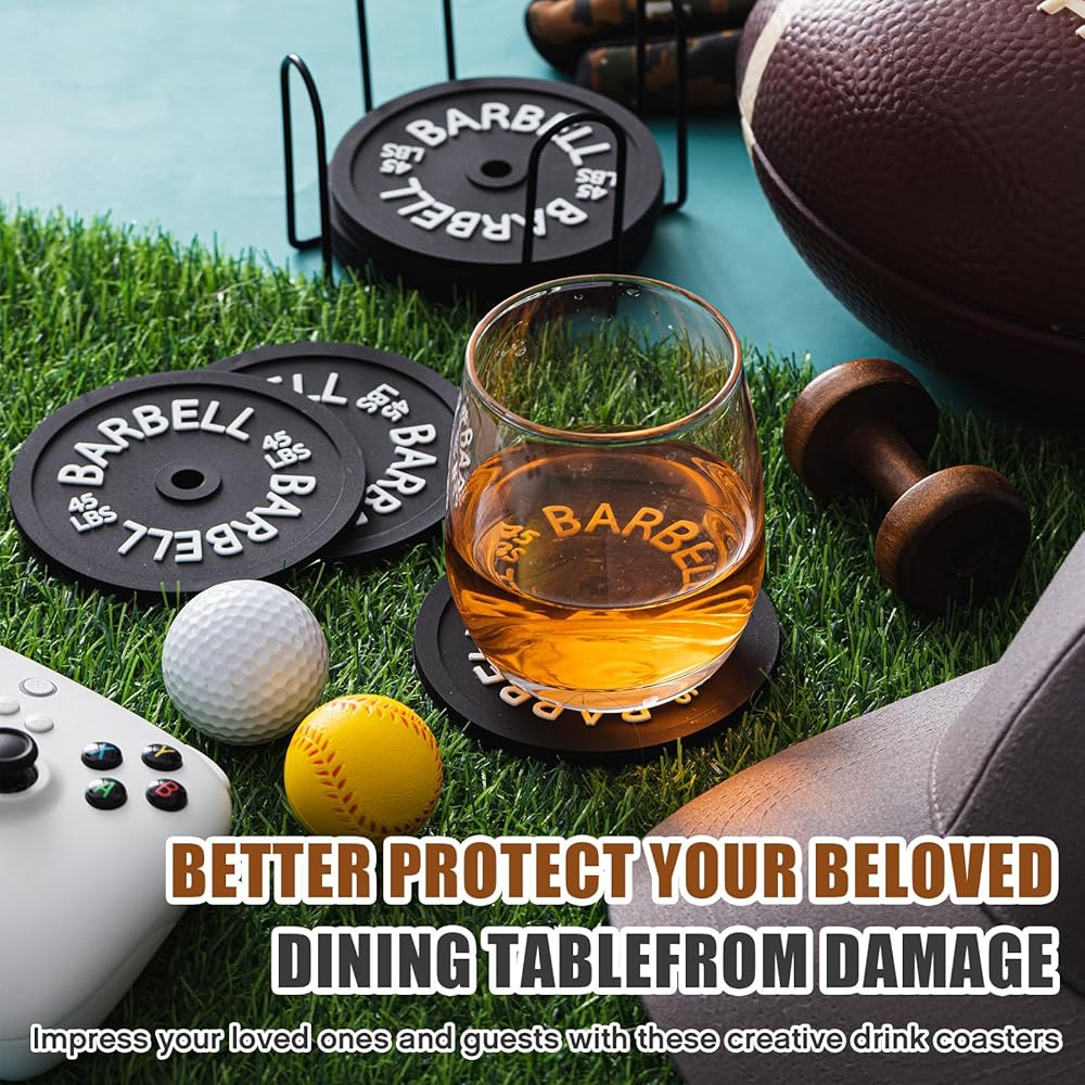 The weight plate coasters stay true to the authentic weightlifting rule design. The patterned side is concave and convex, preventing cups from sticking. They are suitable for various drinkware, from glasses and mugs to shakers and beers.