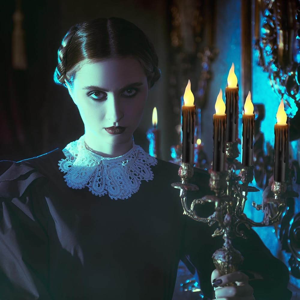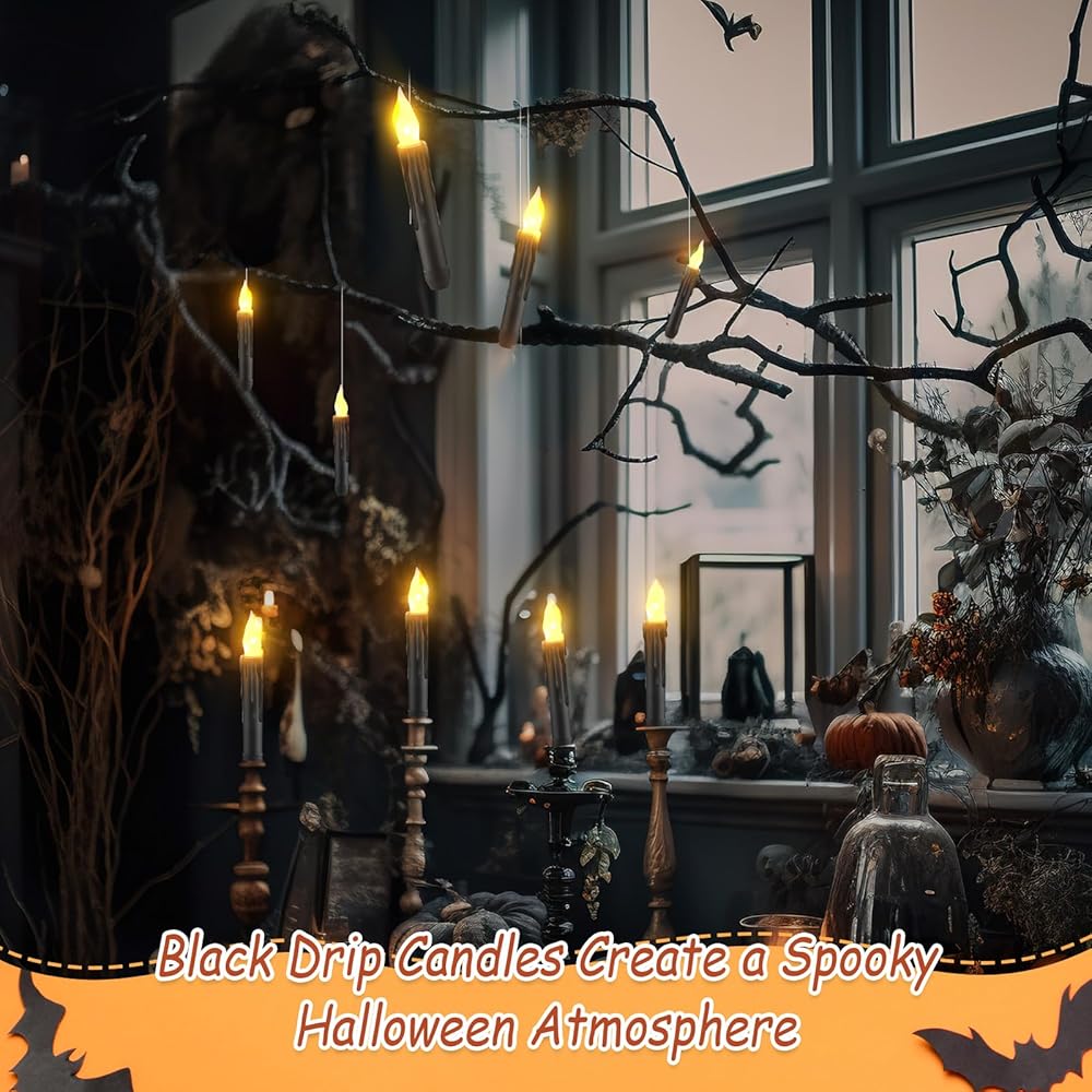 The LED candle flickers with warm white light. You can hang these candles on the ceiling to create "floating" candles effect for a movie theme party. They also work well for dinner table, room, bedroom, church service, birthday, Halloween, Christmas decoration.