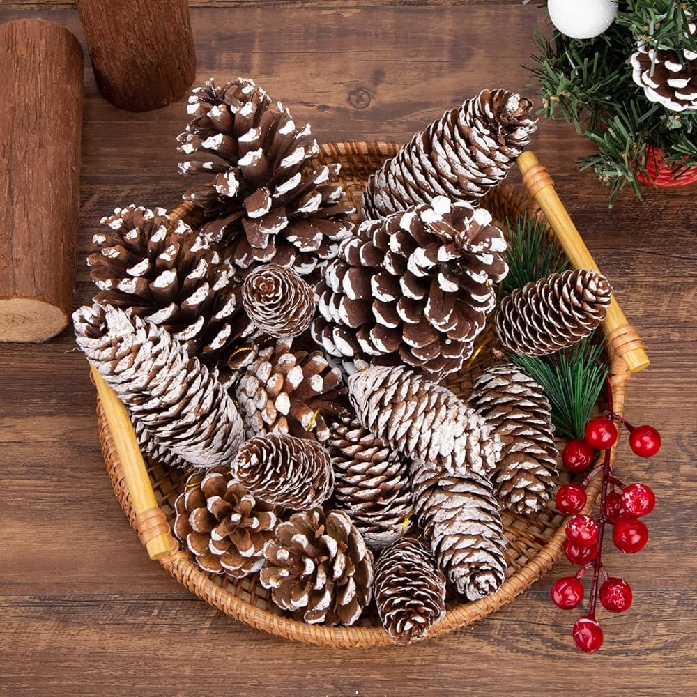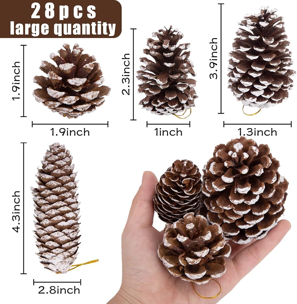 عبوة قيمة للغاية - ستحصل على 28 قطعة من مخاريط الصنوبر الطبيعية مع الثلج. 4 أنواع مختلفة من أكواز الصنوبر متضمنة.
