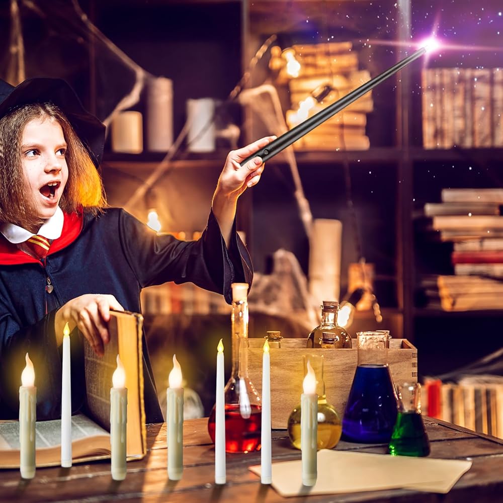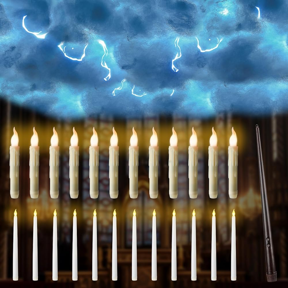 • Convenient Installation: with a generous length of fishing line (approx. 218.72 yd/ 200 m) and 22 pieces of circular hooks included in the package, hanging these flameless floating candles is a breezy affair; Hanging candlelight at different heights in the room can create a strange illusion that candlelight hovers in midair; The floating teardrop candle needs to be loaded with 2 AA batteries, while the pencil candle and wand need to be loaded with 1 AAA battery (batteries are not included)