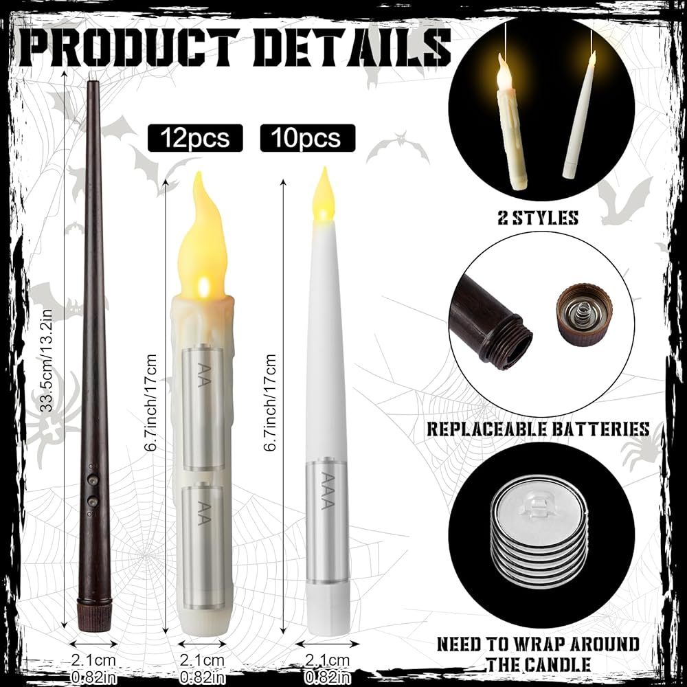 • Widely Applicable: beyond Christmas, these taper candles battery operated are also nice for other occasions and spaces, like themed parties, haunted houses, dining tables, birthdays, housewarming celebrations, movie nights or horror game sessions or even as a prank tool; Their portable size ensures you can effectively use them wherever the horror charm is needed