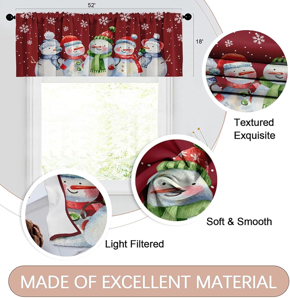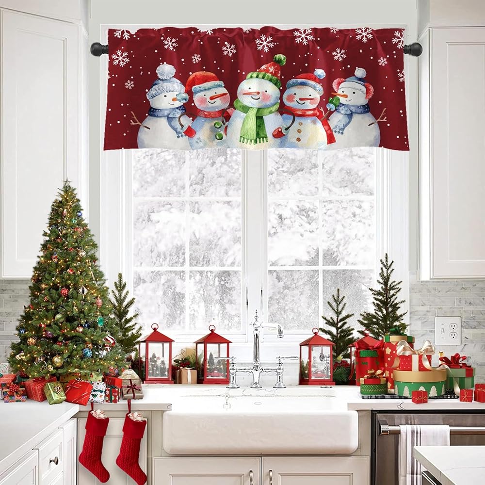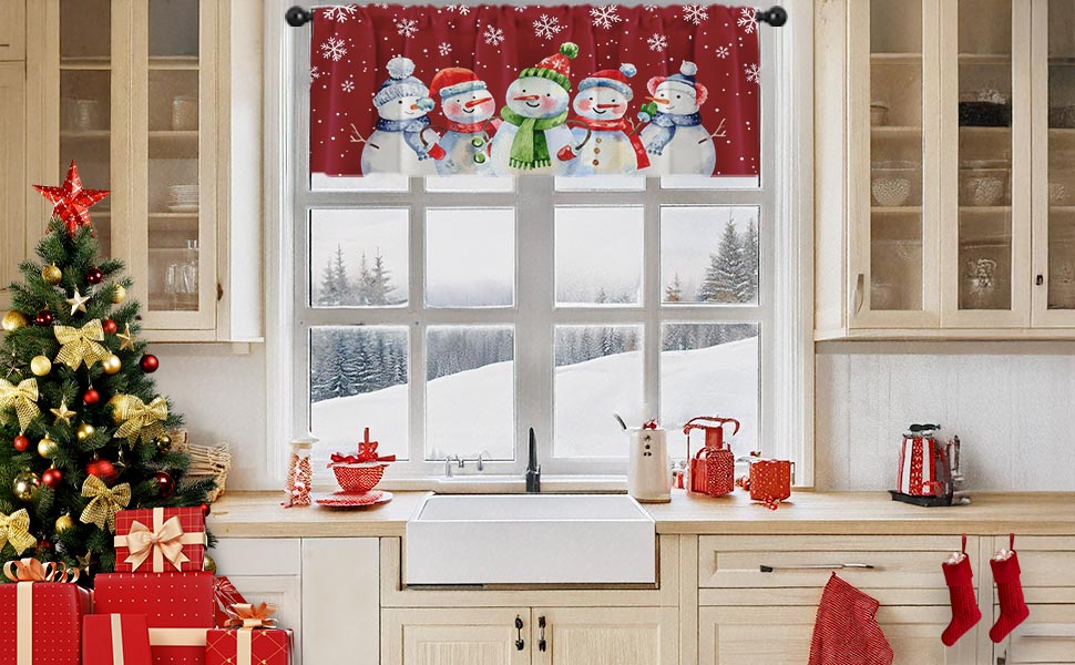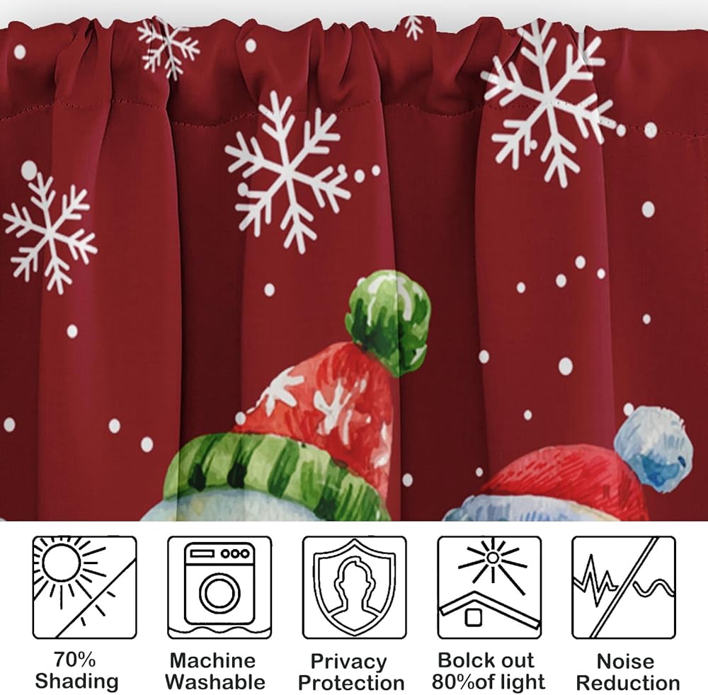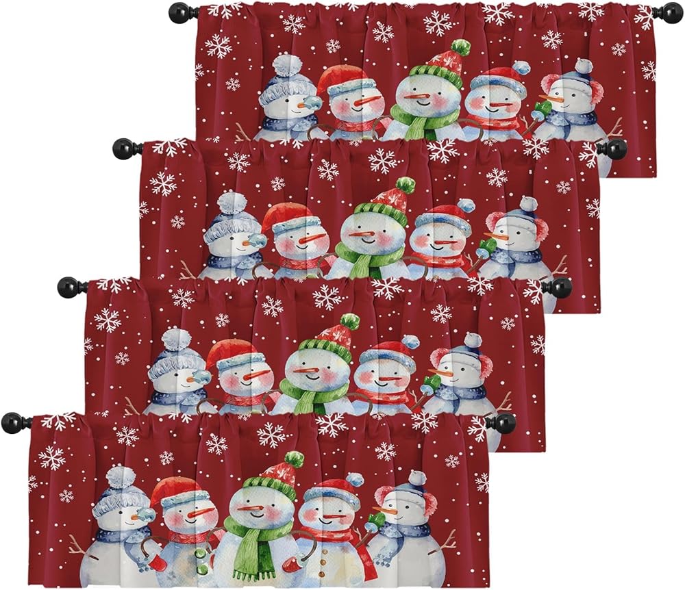 4 عبوات من ستائر النوافذ، ستائر عيد الميلاد اللطيفة على شكل رجل ثلج ندفة الثلج، ستائر قابلة للتعديل للنوافذ وغرفة المعيشة وحوض المطبخ أعلاه، ستائر جيب قضيب مقاس 18 × 52 بوصة