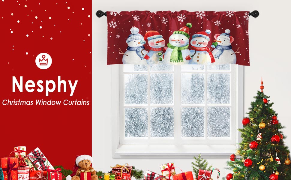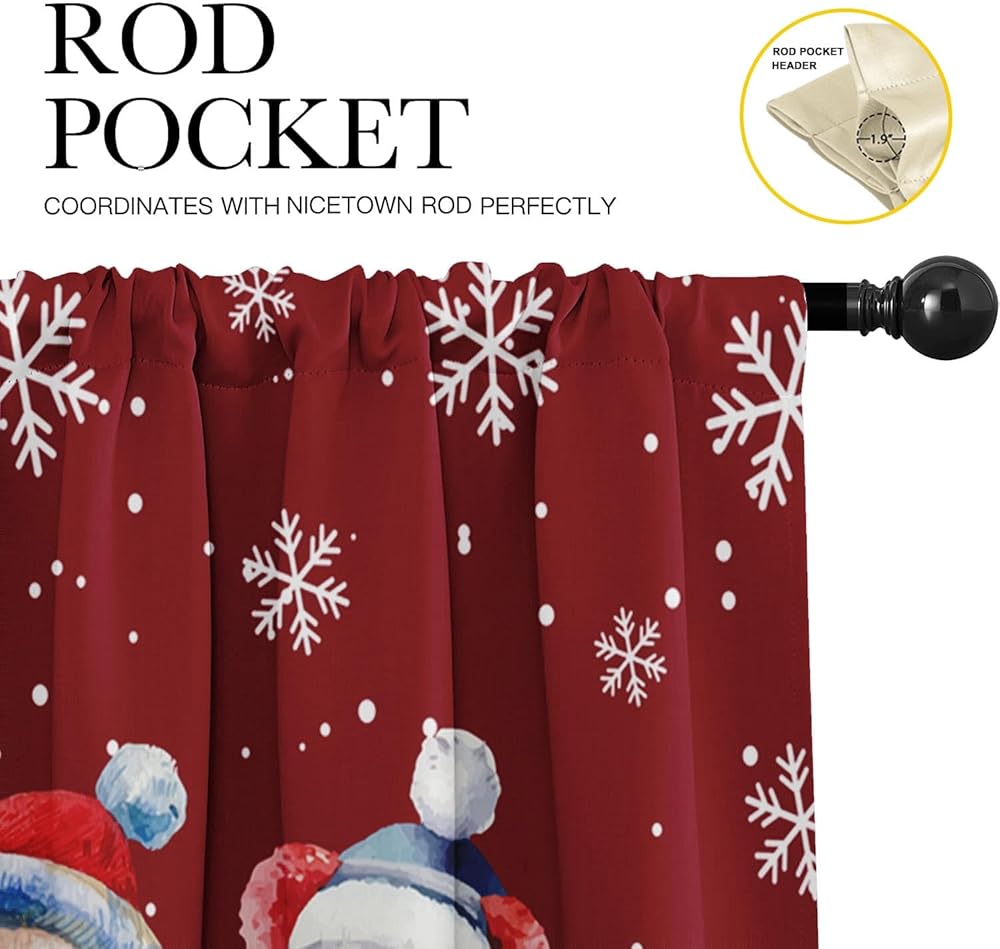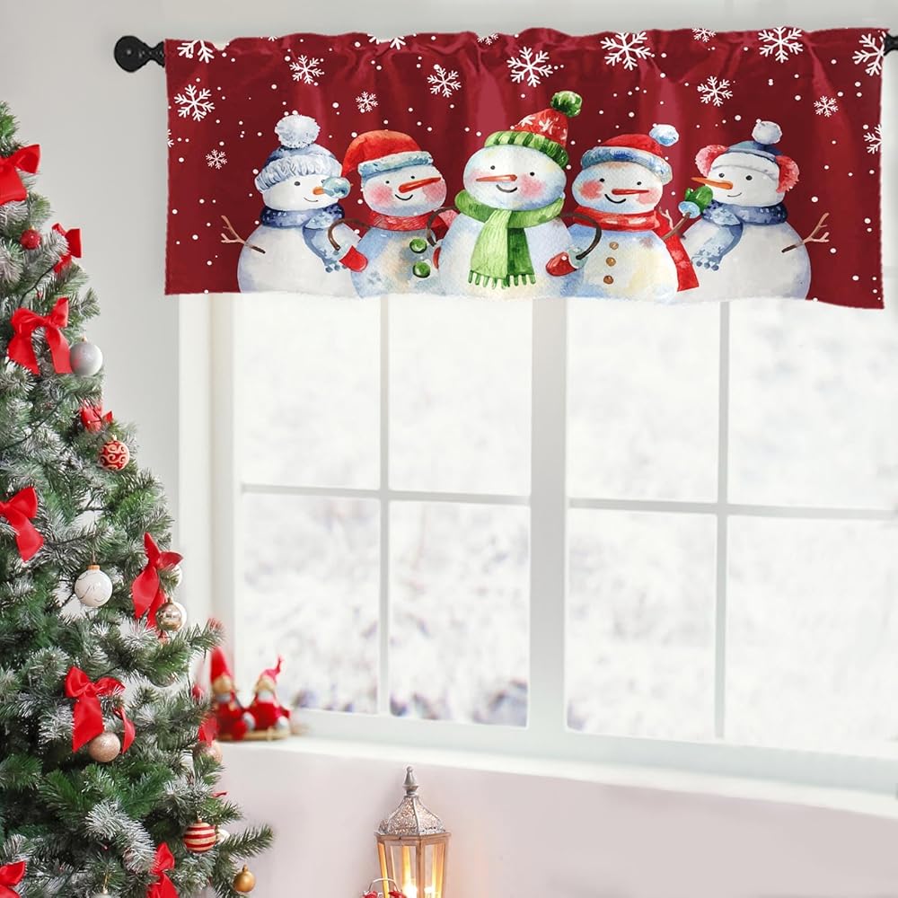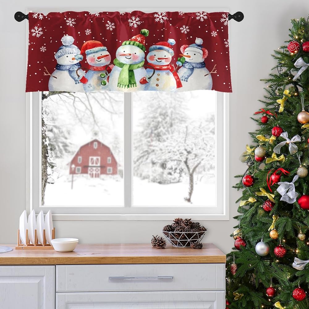 4 عبوات من ستائر النوافذ، ستائر عيد الميلاد اللطيفة على شكل رجل ثلج ندفة الثلج، ستائر قابلة للتعديل للنوافذ وغرفة المعيشة وحوض المطبخ أعلاه، ستائر جيب قضيب مقاس 18 × 52 بوصة