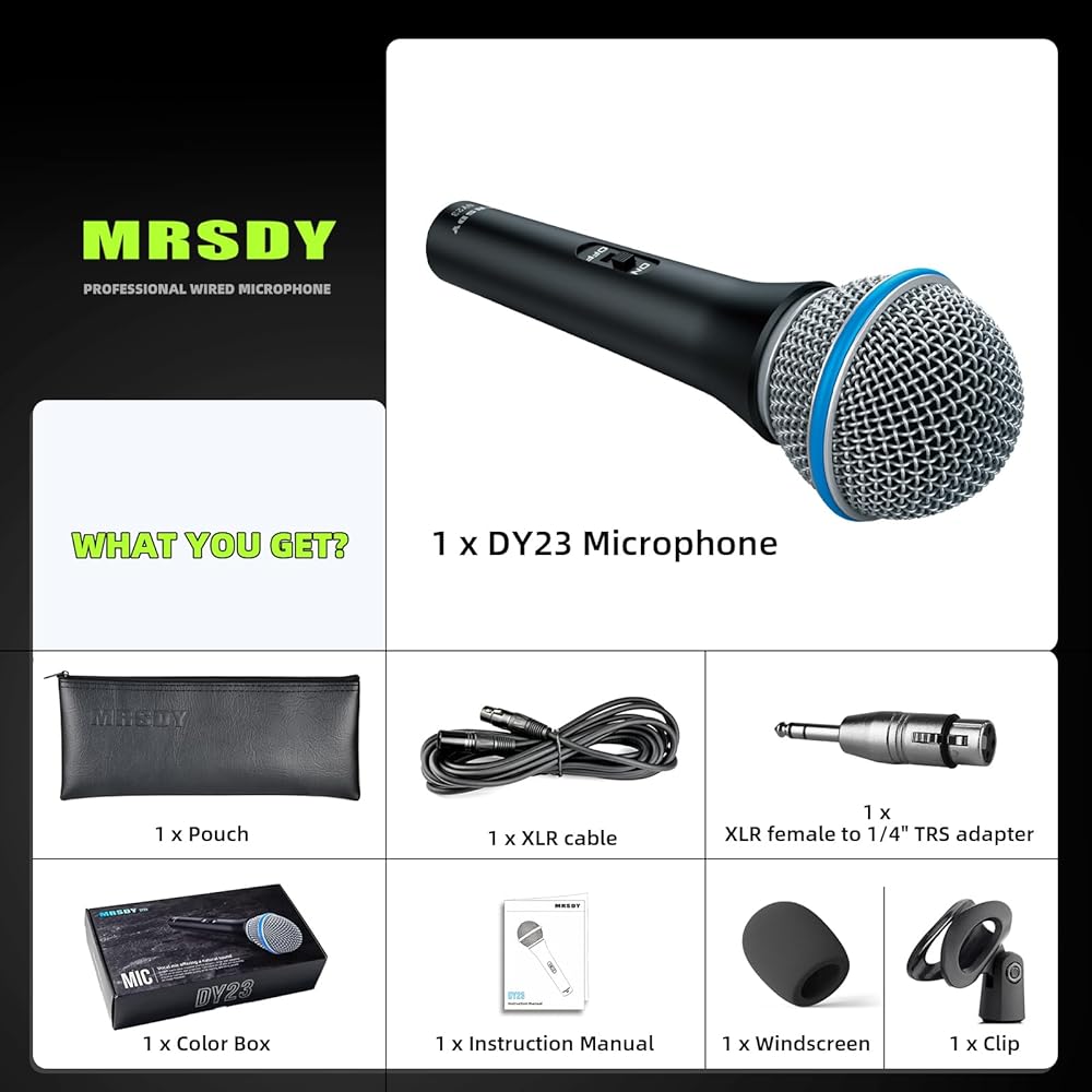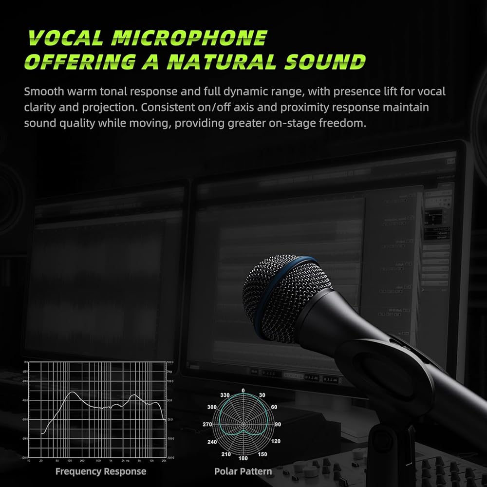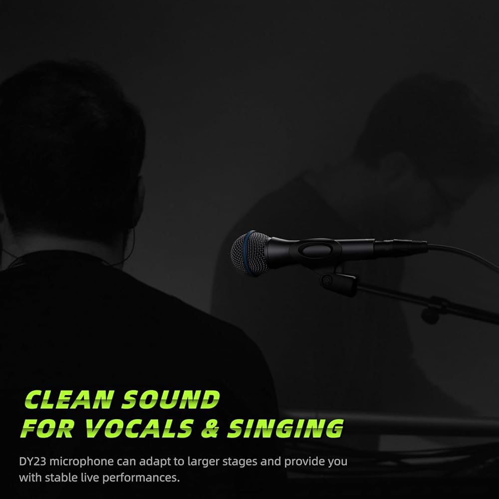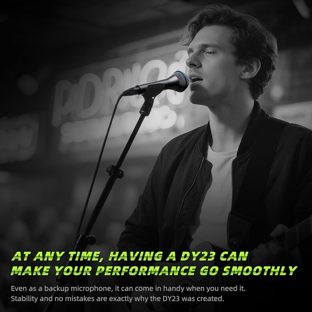 جودة الصوت -- يؤكد الميكروفون الديناميكي DY23 على وضوح الترددات المنخفضة والمتوسطة، مما يوفر صوتًا طبيعيًا دافئًا. وتم تحسين الترددات العالية قليلاً لتسهيل الغناء.