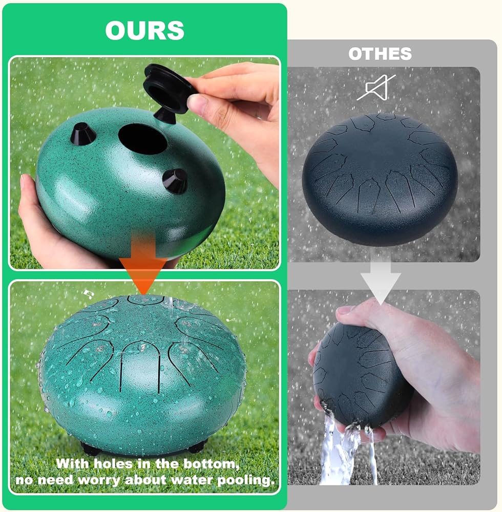 【مادة قوية ومتينة】: مصنوعة بعناية من الفولاذ المختار عالي الجودة، هذه الطبلة ذات قطرة المطر ليست أنيقة في المظهر فحسب، ولكنها تتمتع أيضًا بمتانة ممتازة. فهي قادرة على تحمل جميع أنواع الطقس القاسي، مما يضمن أنها ستوفر لك الاستمتاع بالموسيقى الرائعة لفترة طويلة