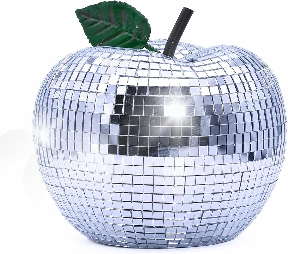 - تصميم أبل الساحر: لمسة مبهجة على كرة الديسكو الكلاسيكية، تضفي قطعة الديكور هذه على شكل تفاحة لمسة مرحة وأنيقة على أي مكان.