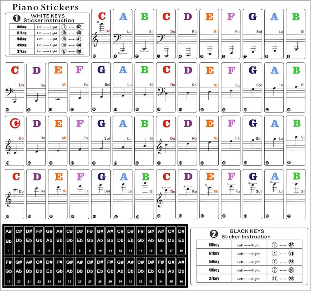 Wide Range Of Uses - Suitable for all pianos and keyboards with 88/61/54/49/37 keys, including electric pianos. Perfect for beginners learning to play the piano, helping them familiarize themselves with the keys and read sheet music more easily.