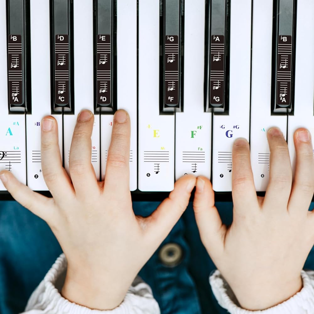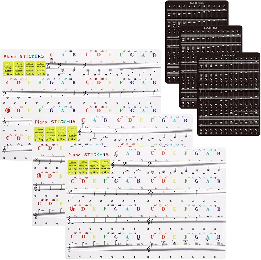 【Useful Design】Piano stickers are innovative and useful in design, it will improve your concentration/memory and speed up the process of learning piano. The colored and black piano key stickers are clearly visible with keys and notes, making learning more fun and exciting.(Includes: 3 colored +3 black))