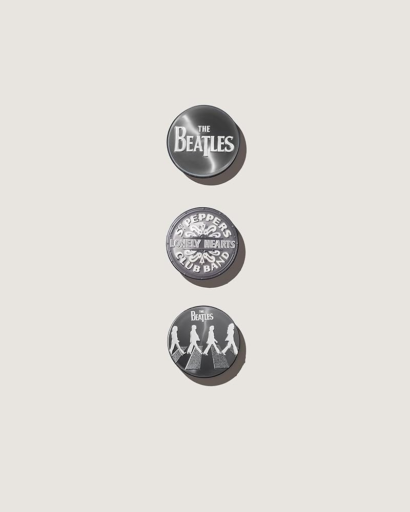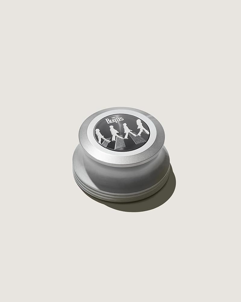 The Set includes a spectacular stainless aluminum base record stabilizer with an 80mm diameter and weight of 375 grams (13.2 oz) and three interchangeable silver-plated inserts adorned with exclusive Beatles designs DESIGN: Abbey Road with detailed relief adding tactility to music's most iconic image Sgt. Pepper's Lonely Hearts Club Band honoring the world famous drum skin The enduring Beatles 'T Drop' logo in a striking polished and matte look it does also include a lushly finished circular wooden box made with strand-woven bamboo, a certificate of authenticity and care instructions. This produce is made in Germany and a Beatles Product Licensed by Apple Corps Ltd. “Beatles” is a trademark of Apple Corps Ltd.