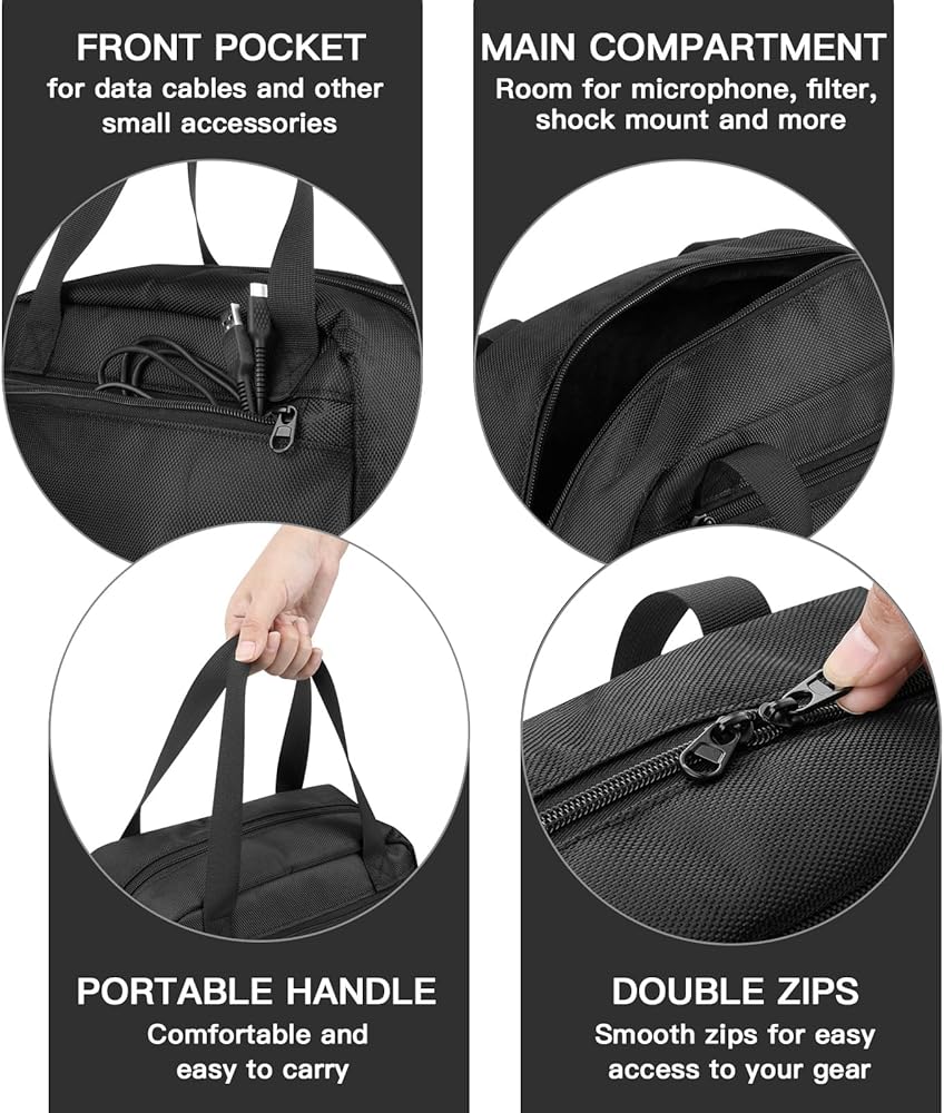 • 【Convenient Storage】The main compartment is large enough to hold your Blue Yeti microphone, Blue Pop Filter and shock mount. And the front pocket keeps cables and other accessories tidy.