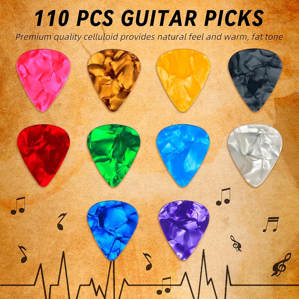 • العبوة: 110 قطعة/الحزمة على شكل جيتار كلاسيكي للعب المريح وتناسب الإصبع بشكل مثالي.