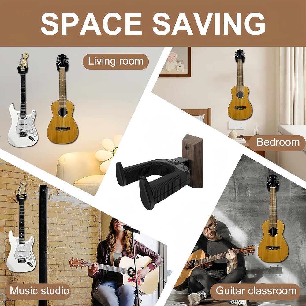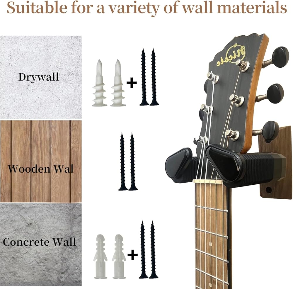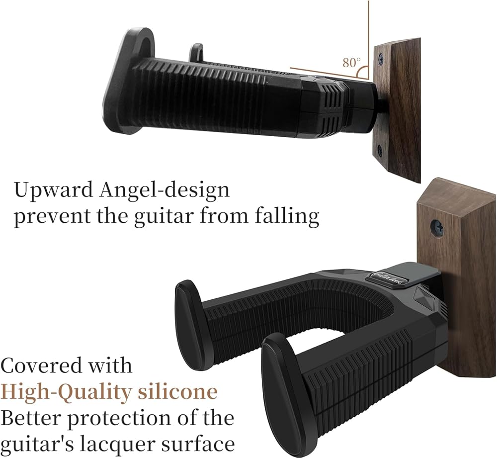 【قاعدة من خشب الجوز الأسود الصلب】كل قاعدة مصنوعة من خشب الجوز الأسود الأصلي، مما يعرض حبيبات الخشب الفريدة. إنها ليست مجرد علاقة جيتار ولكنها أيضًا قطعة زخرفية رائعة تضيف لمسة من الأناقة إلى مساحتك الخاصة.