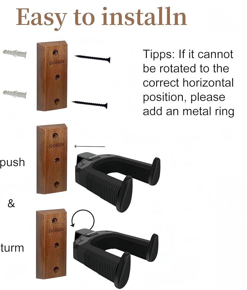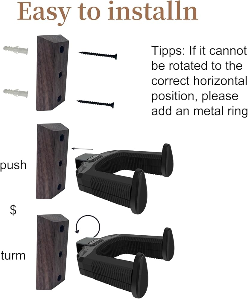 【سهلة التركيب】ما عليك سوى اتباع أربع خطوات سهلة لتركيب حامل الجيتار. وفر الوقت والجهد، مما يسمح لك بالاستمتاع بسرعة بالراحة والجاذبية الجمالية لتعليق الجيتار الخاص بك.