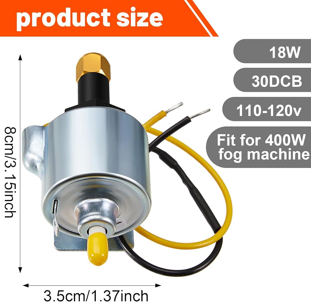 The fog machine pump measures about 4 x 2 x 2 inches/ 10 x 5 x 5 cm, compact and lightweight, convenient to carry and store.