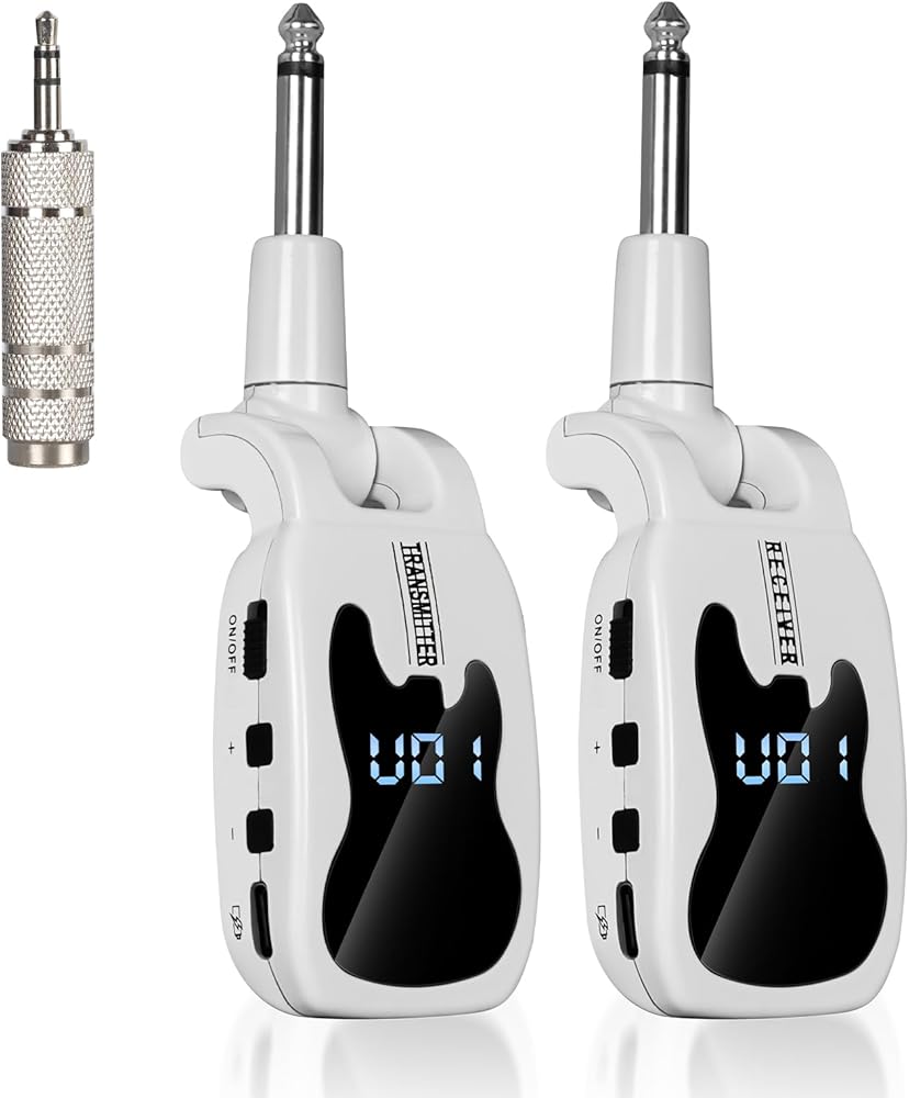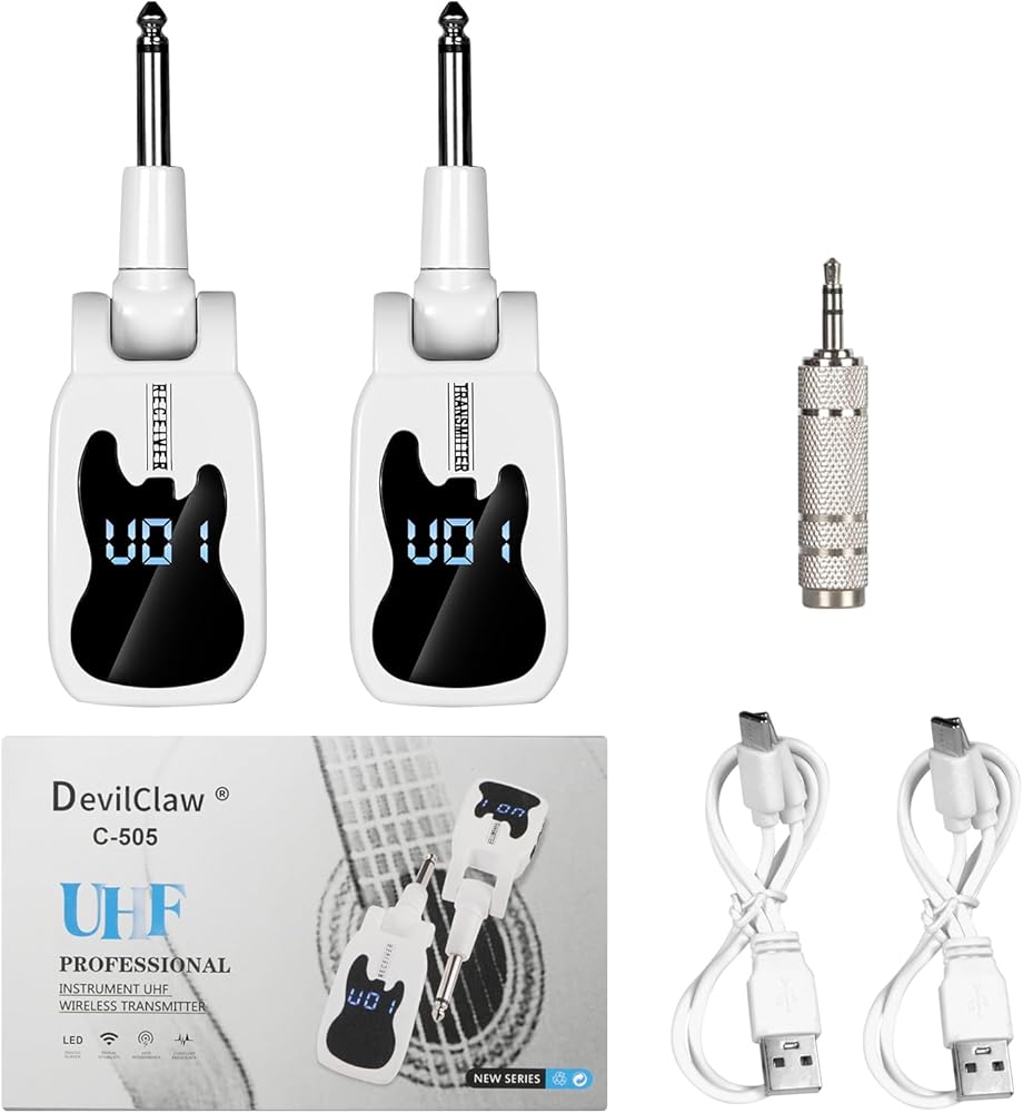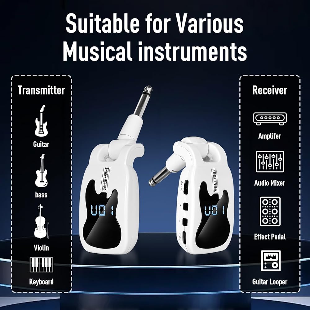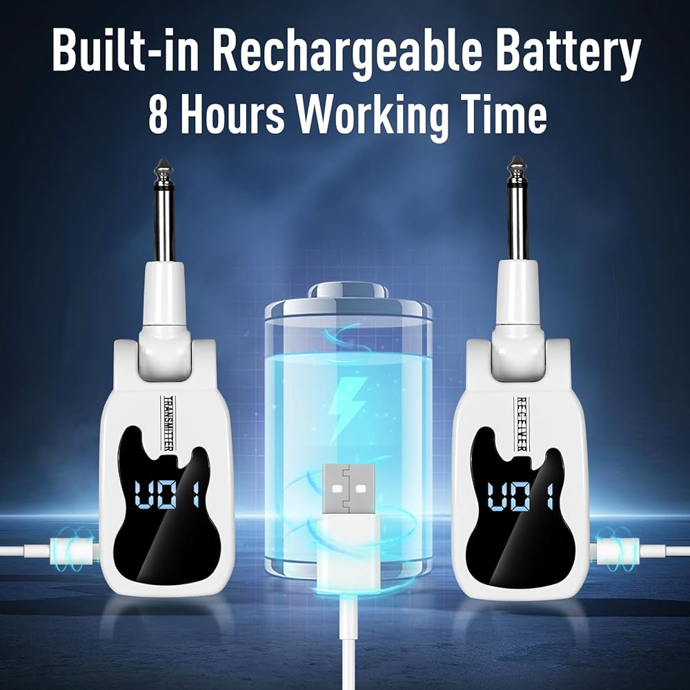 ♫ نقل إشارة جودة واضحة. يعد نظام الجيتار اللاسلكي الخاص بنا مثاليًا لنقل الصوت بشكل أكثر استقرارًا وعالي الجودة. ضوضاء منخفضة، زمن انتقال منخفض، لا يوجد تداخل، مسافة نقل تزيد عن 50 مترًا.