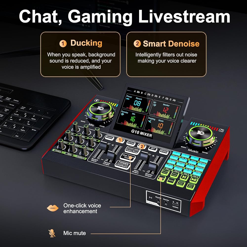 【معالج التأثيرات الصوتية للبث 】تأتي بطاقة الصوت المتدفقة G9 مع ميكروفون مكثف يتيح لك بدء البث أو البث المباشر بسهولة في أي وقت من الأوقات. التحكم بشكل بديهي في الإدخال والإخراج، ومزج صوتك في الوقت الفعلي وإضافة تأثيرات صوتية. مثالية لتسجيل البودكاست والبث والتعليق الصوتي وإنشاء المحتوى.
