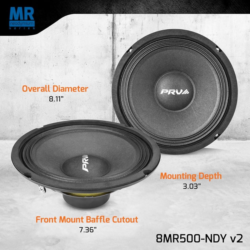 PRV AUDIO 8MR500-NDY V2 نيوديميوم 8 بوصة متوسط ​​المدى 8 أوم مكبر صوت برو 500 واط (مفرد)