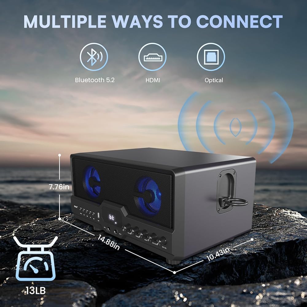 【تقديم صوت قوي وواضح 】: حجم L268 هو 14.88X10.43X7.76 بوصة ويزن 13 رطلاً فقط. مزود بمكبرات صوت 2*15 وات ومضخم صوت 30 وات مما يجعله يوفر صوتًا واضحًا وقويًا مع صوت جهير متوازن وثلاثي أضعاف، بصوت عالٍ بما يكفي لحفلة منزلية بأكملها. (ملاحظة: تم تصميم هذه الآلة للاستخدام الداخلي لذا فهي لا تحتوي على بطارية، ويمكن استخدامها فقط مع محول الطاقة)