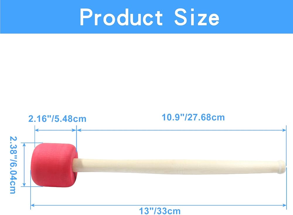 • Package Included: 2 x Timpani Mallets Percussion. Perfect size: The drum sticks have a total length of approximately 13.22 inches/33.5cm, with a head diameter of about 2.4 x 2 inches/6.1 x 5.2 cm (DxL), and a handle diameter of around 0.79 x 11.22 inches/2 x 28.5 cm (DxL).