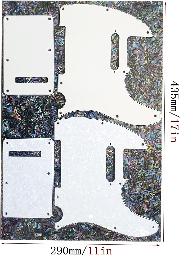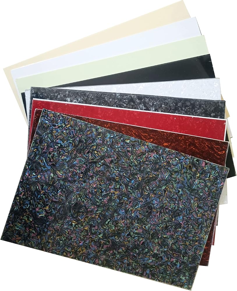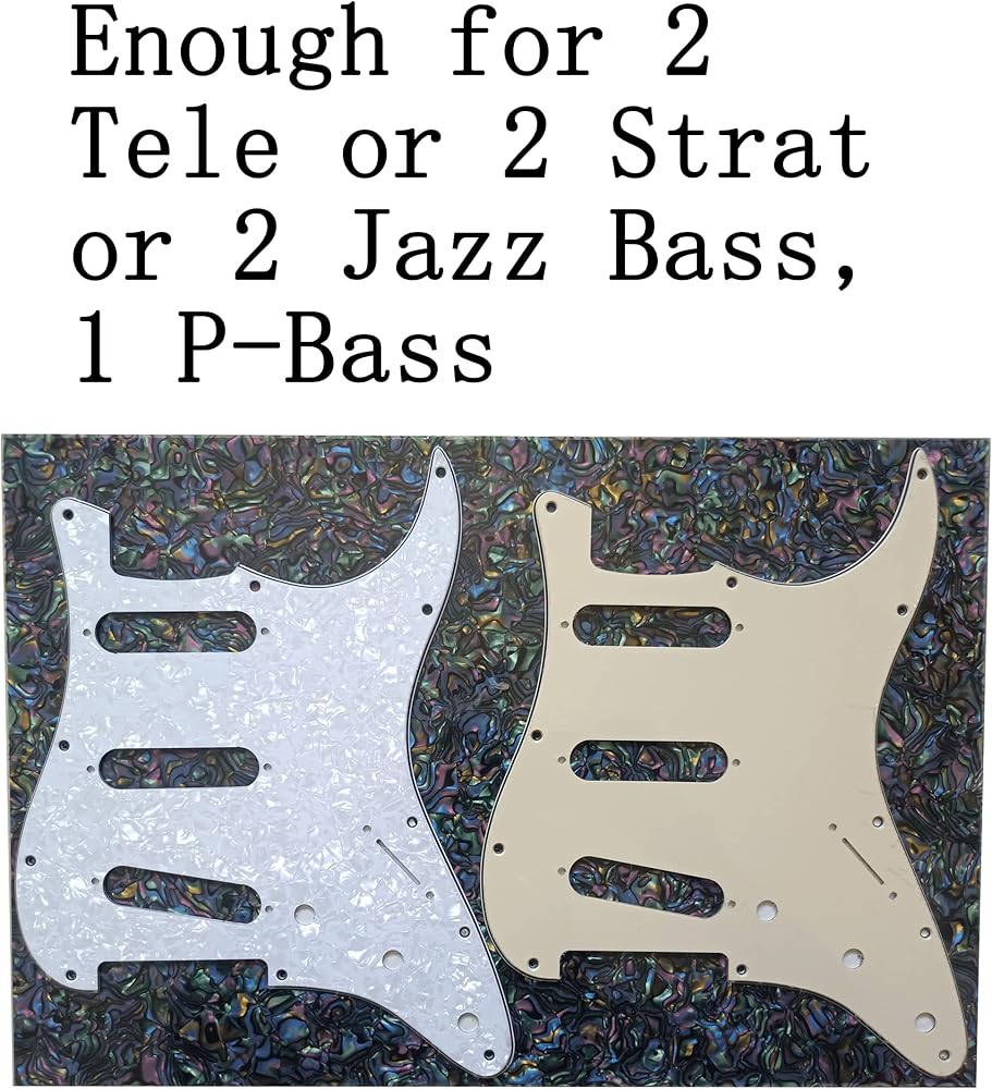 Use this blank pickguard material sheet to cut your own guitar pickguards, enough for 2 Tele or 2 Strat or 2 Jazz Bass, 1 P-Bass of your own design and choice.