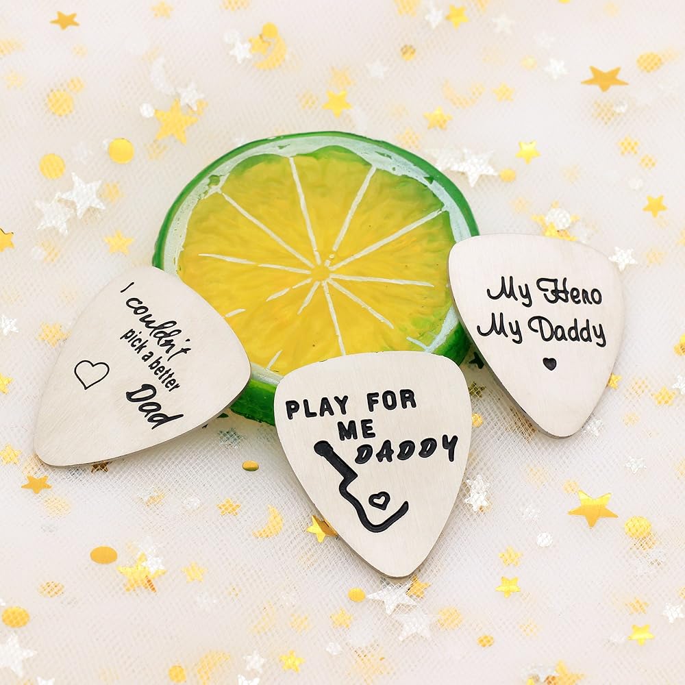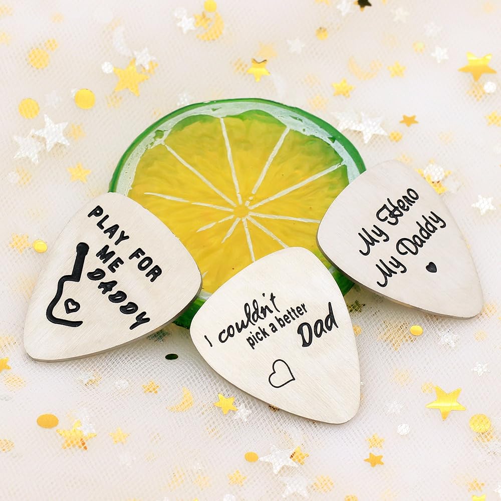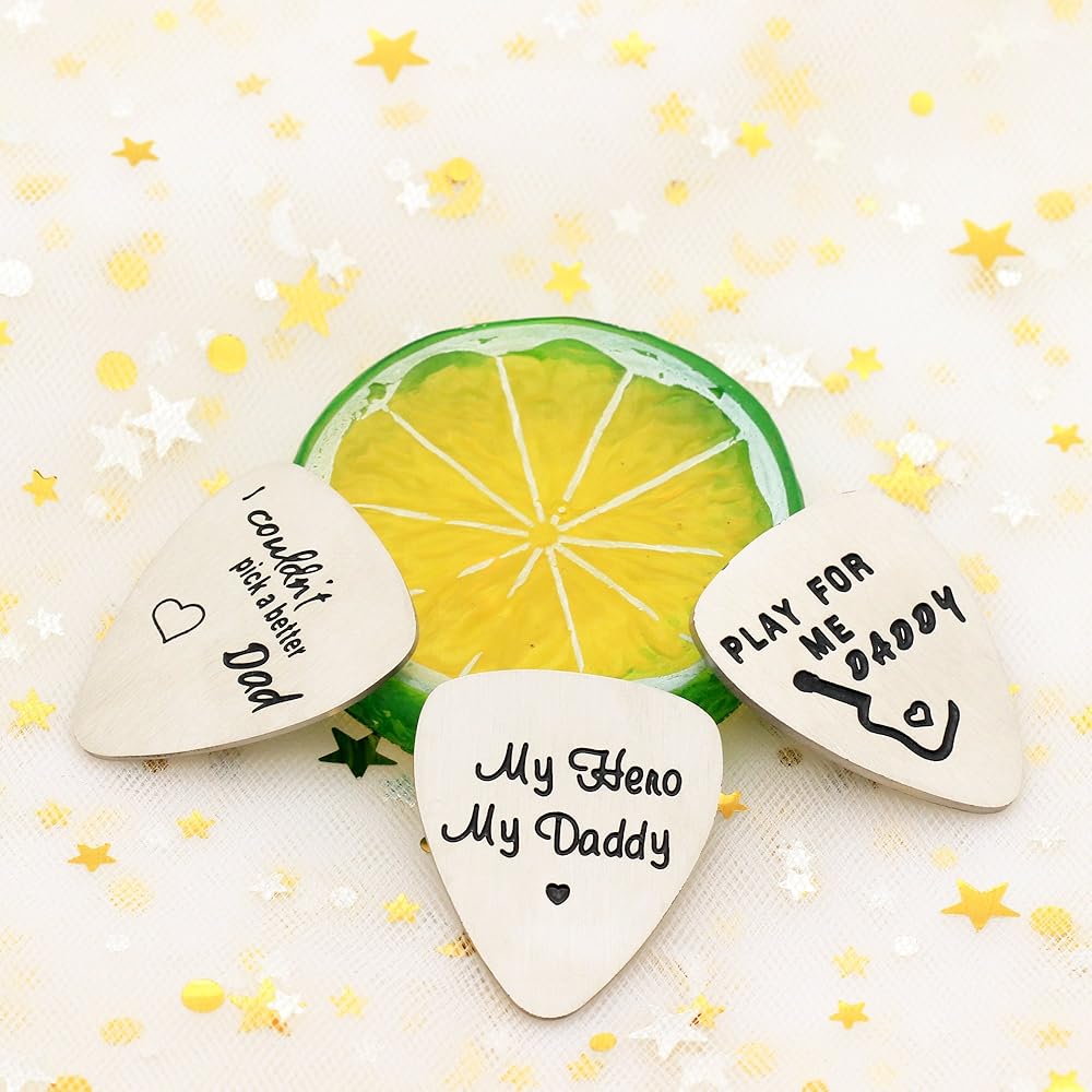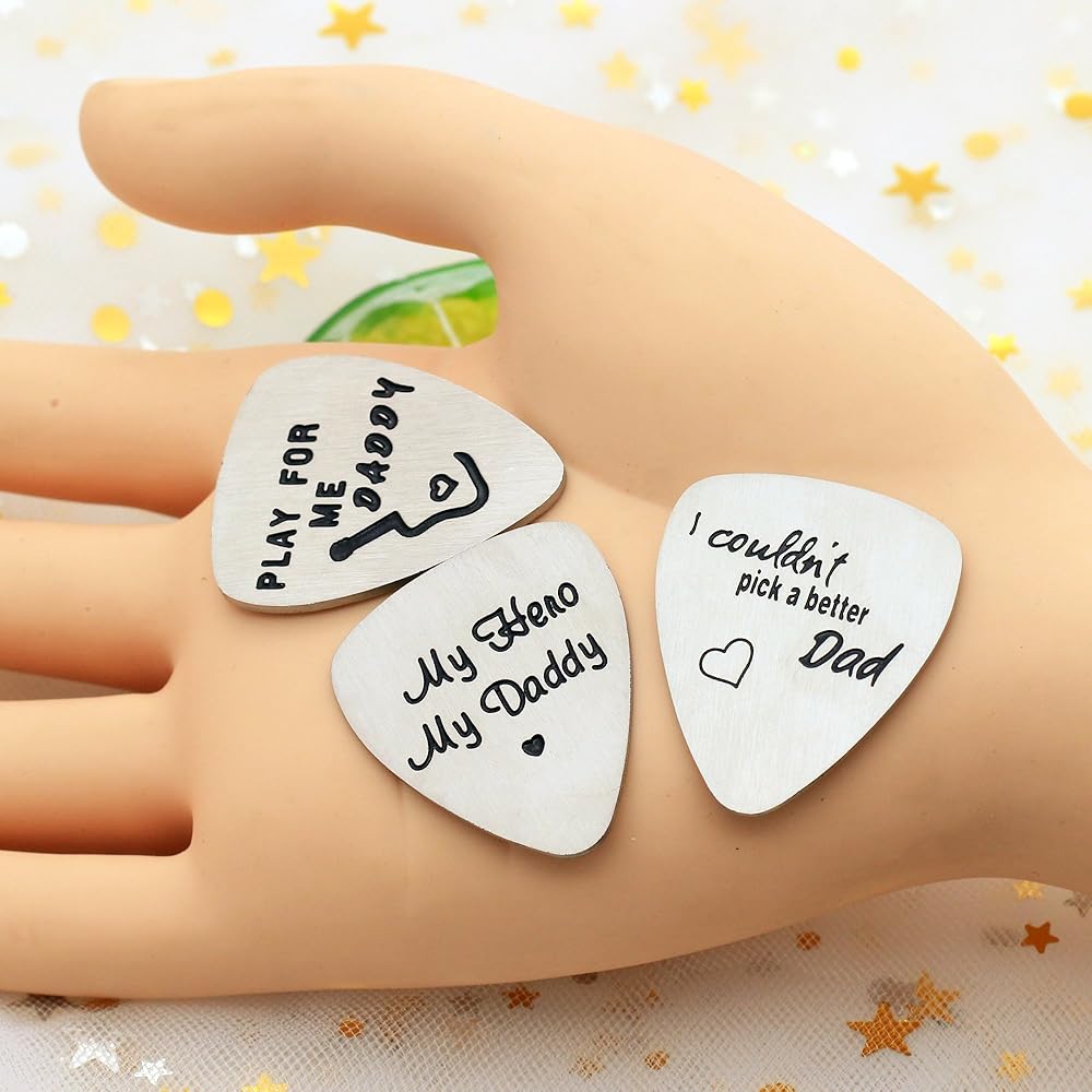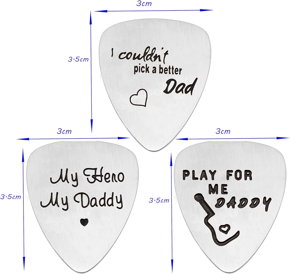 - You Will Get 3 Guitar Picks With Different Inscriptions:I could't pick a better Dad;My Hero My Daddy;Play For Me Daddy.