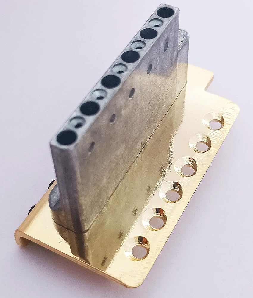 • Length 84.3mm, Width 40mm, Strings spacing and screw hole spacing from E to E 52.5mm. Block Depth 35mm. The depth of the block will fit most Stratocaster style guitars particularly thinner bodied models.