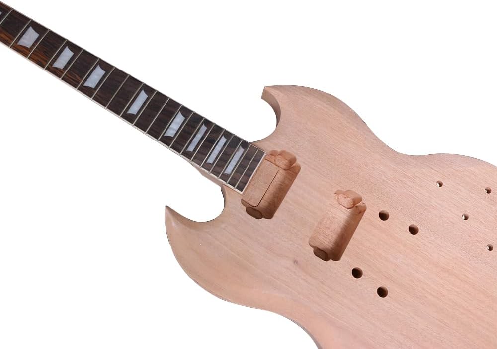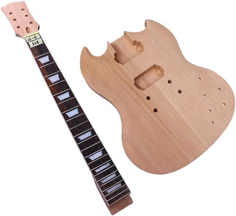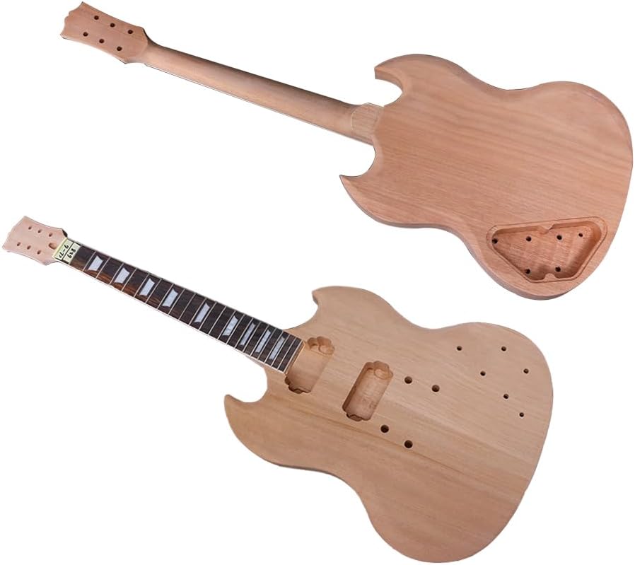 Build Your Dream SG-Style Electric Guitar This DIY kit provides everything you need to craft a high-quality, SG-style electric guitar. Featuring a comfortable mahogany body and neck for warm tone, a rosewood fretboard for smooth playability, and a classic 24.75" scale length, this kit is perfect for both luthiers and aspiring guitar builders. * Mahogany body and neck for rich sound * Rosewood fretboard with 22 frets for comfortable playing * Standard 42mm nut width for a familiar feel * Ideal for DIY guitar enthusiasts