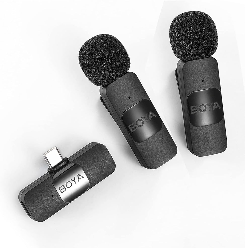 ميكروفون BOYA اللاسلكي Lavalier لأجهزة Android USB C والهواتف الذكية والكمبيوتر اللوحي وميكروفون خارجي صغير من النوع C لهاتف iPhone 15 مع ميكروفون لتسجيل الفيديو والبودكاست وبث اليوتيوب