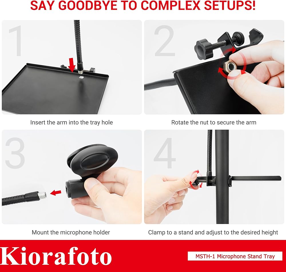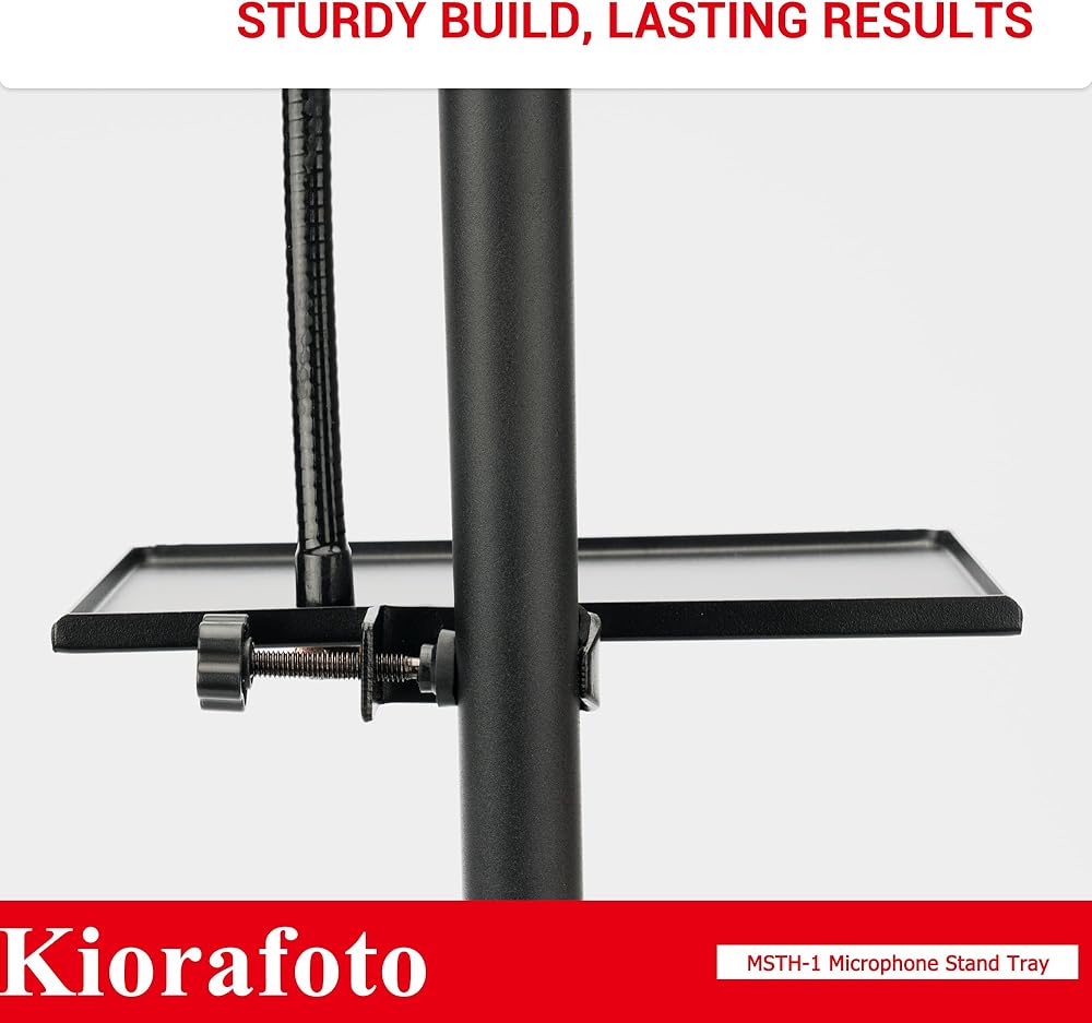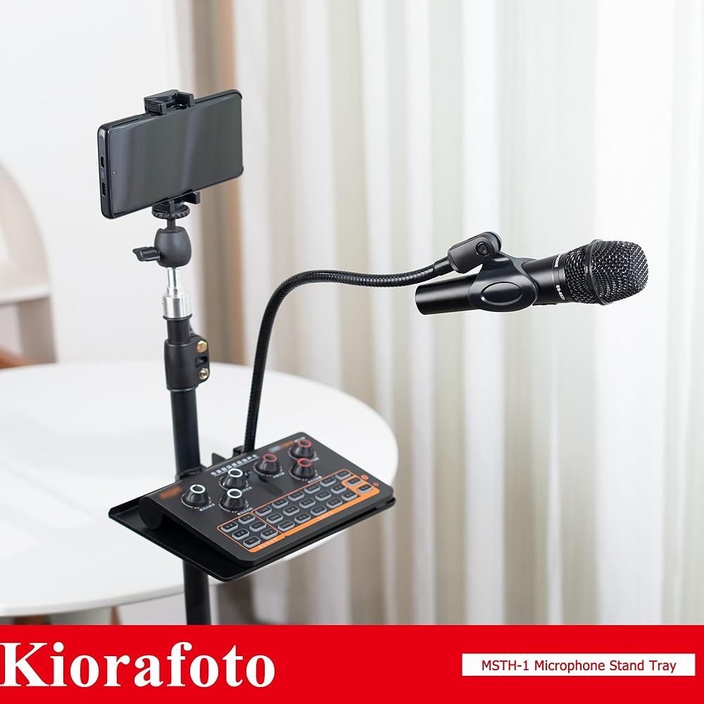 This Microphone Stand Tray is meticulously designed to securely attach to microphone stands or music stands with a diameter ranging from 0.2 to 1.1 inches (5 to 28mm).This ingenious accessory is designed to bring convenience within your reach, allowing you to store items like sound cards, capos, phones, and more effortlessly. Whether performing on stage, working in an office, teaching in a classroom, presenting in a lecture hall, acting in a theater, recording in a studio, participating in a seminar, attending a meeting, or simply at home, this versatile tray proves its worth. With a remarkable maximum load capacity of 6.6 pounds (3kg), this tray offers robust support for your essentials. Its straightforward yet practical design makes installation a breeze. Mount it to your microphone stand, adjust it to the desired height, and then secure it by tightening the screws. Adding to its versatility, the tray features a microphone holder with a flexible arm that bends easily, allowing you to customize its position to your preference. This tray is constructed from high-quality metal material, exemplifying durability and resilience. Its construction is designed to withstand the test of time, minimizing the risk of fractures or damages. The tray's intelligent design incorporates heightened edges on all sides, offering a protective barrier that prevents items from slipping or rolling off unintentionally. Incorporating convenience and dependability, the Microphone Stand Tray is a testament to innovation. Its intuitive design, inclusive features, and resilience make it an invaluable asset for musicians, educators, professionals, and enthusiasts. Effortlessly enhancing accessibility and convenience, this tray elevates your experience and empowers you to focus on your creative pursuits seamlessly.