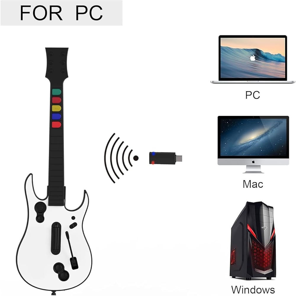This wireless receiver is designed for NBCP & DOYO PC and PS3 guitar controllers, offering a simple plug-and-play solution for PC and PS3. Perfect for games like Guitar Hero and Rockband, it delivers a stable 2.4G wireless connection for an easy and uninterrupted gaming experience. Exclusively designed for NBCP & DOYO guitars.