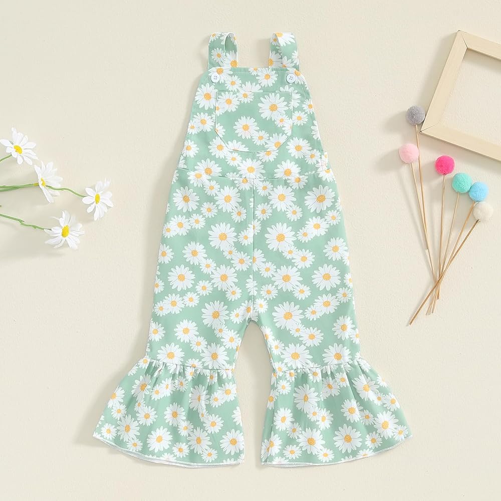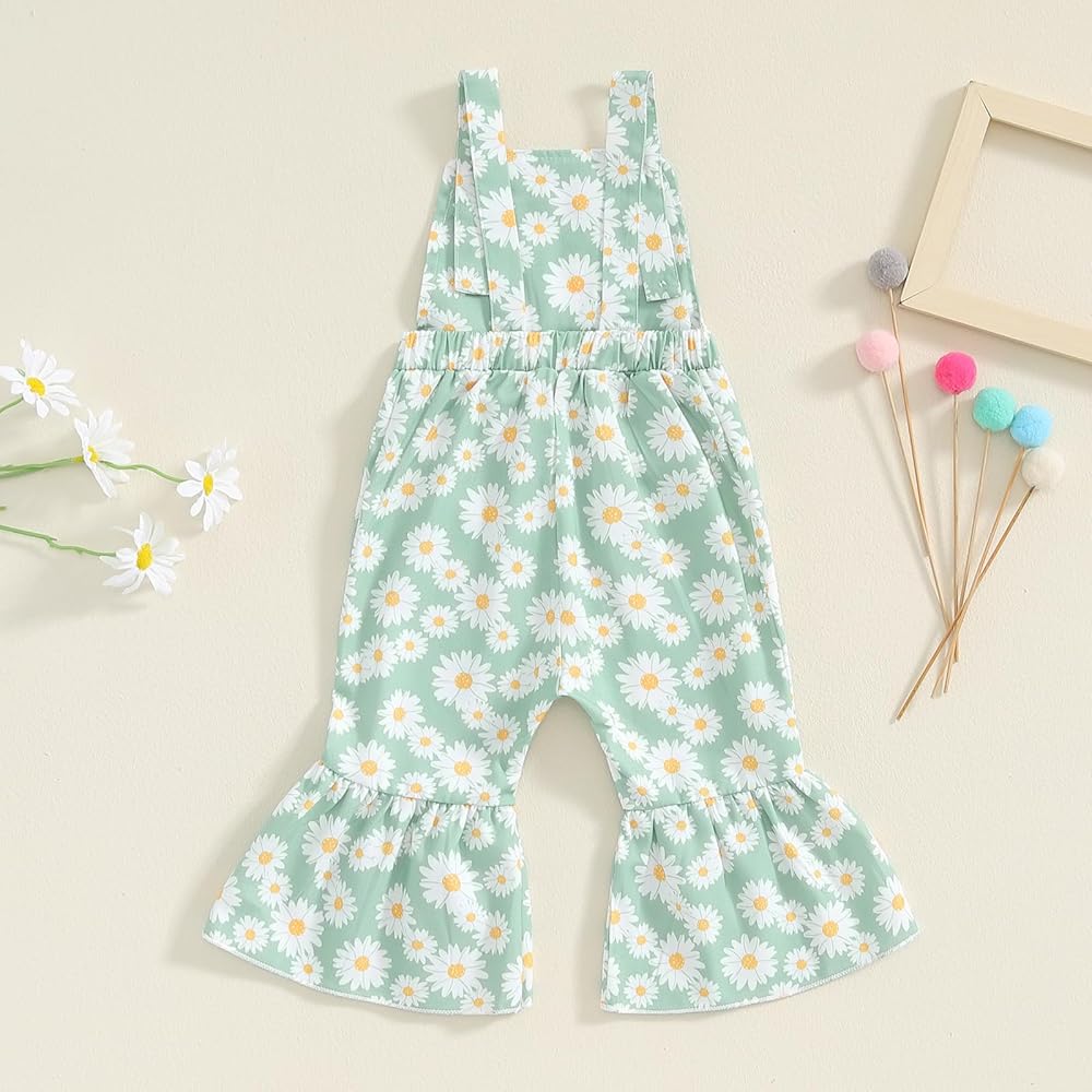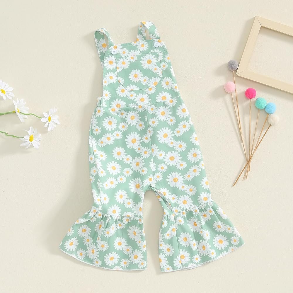 Toddler Girl Fall Clothes Floral Baby Girl Bell Bottom Jumpsuit Baby Girl Overalls Flare Leg Jumpsuit