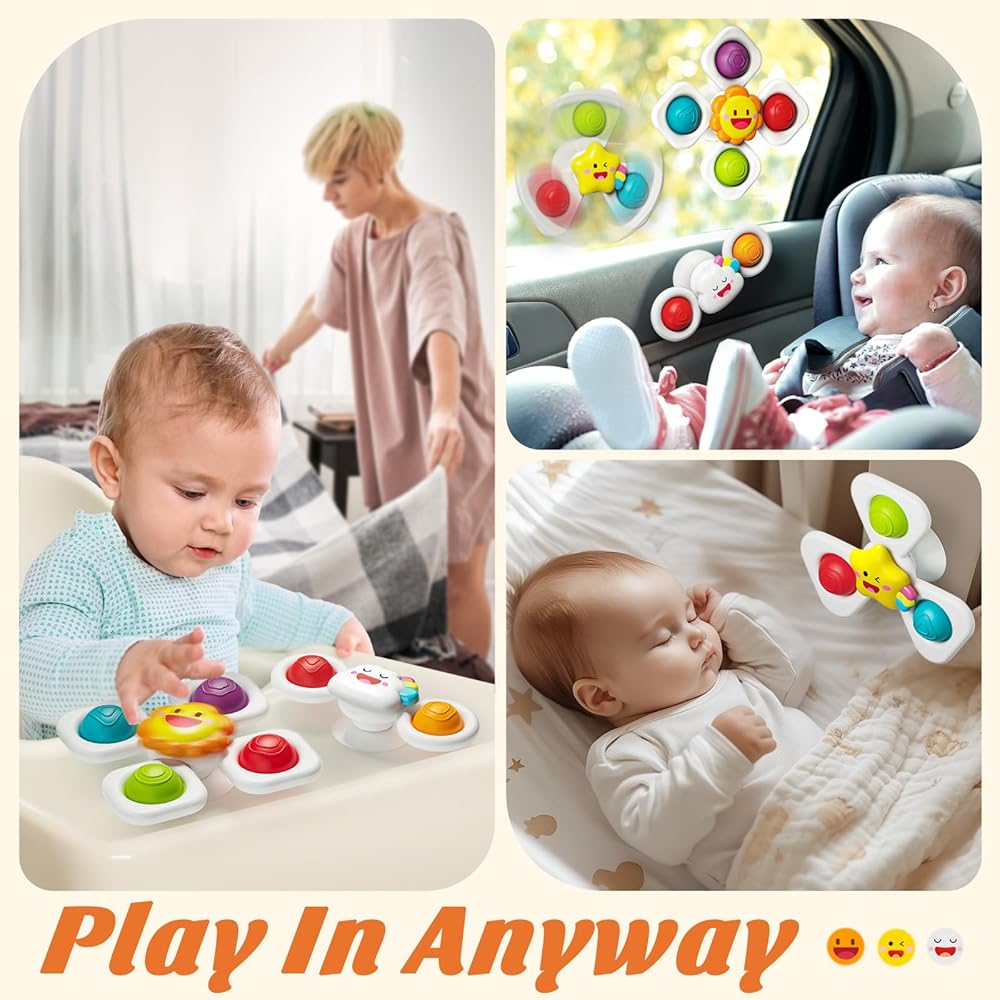 【كوب شفط قوي】يمكن لألعاب الأطفال هذه أن تمتص على أي سطح. لعبة الطفل الدوارة سهلة التركيب. يمكنك تثبيتها على طاولة الطعام أو حوض الاستحمام أو عربة الأطفال أو مقعد السيارة، مما يجعلها مريحة للترفيه. يمكنك الاطمئنان إلى أن طفلك سيكون آمنًا وآمنًا أثناء الاستمتاع بهذه اللعبة الدوارة الممتعة.