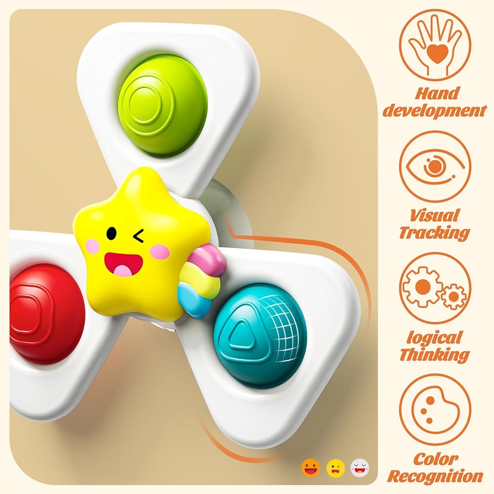 【أيدي مجانية للآباء】يمكن للطفل اللعب بالدوار بشكل مستقل، مما يمنحك الفرصة للعناية بالمهام المنزلية أو العمل. من المؤكد أن هذه الألعاب الدوارة ذات الكوب الشفط ستبقي طفلك الصغير منشغلاً لساعات طويلة.